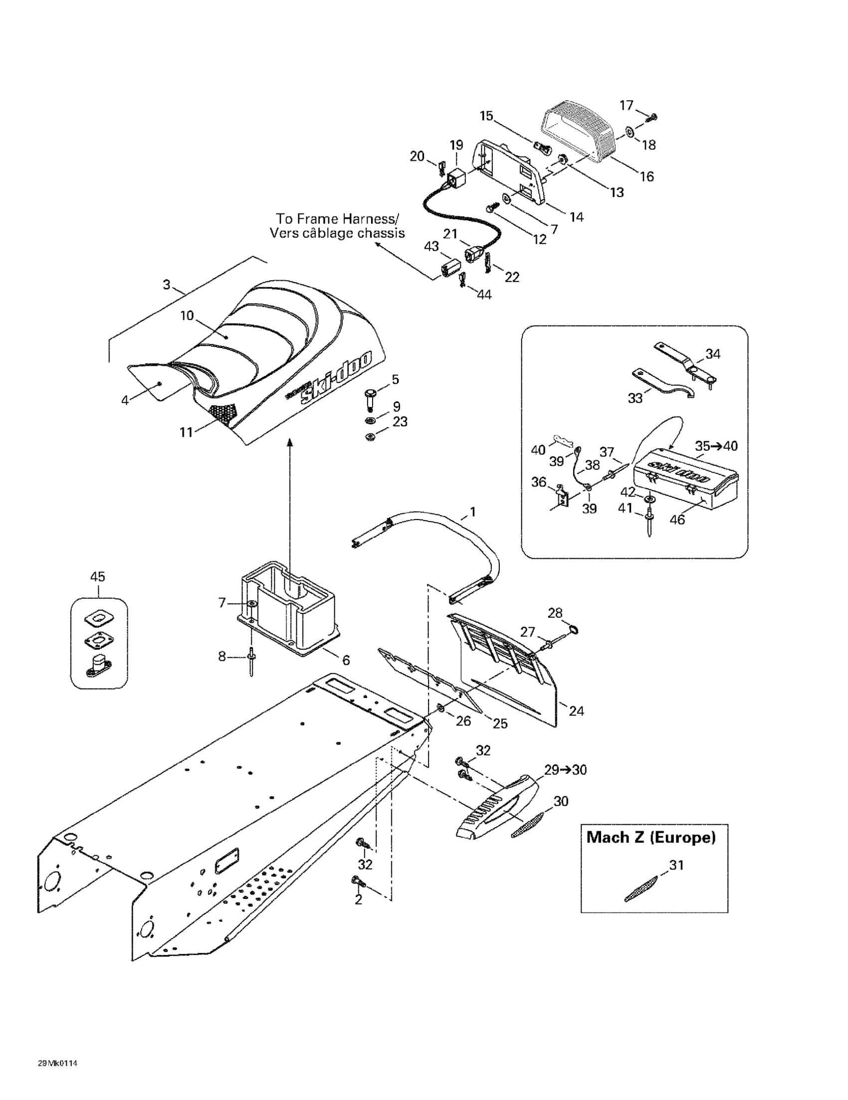 Ski-Doo Mach Z, 2001 Seat And Accessories Diagram