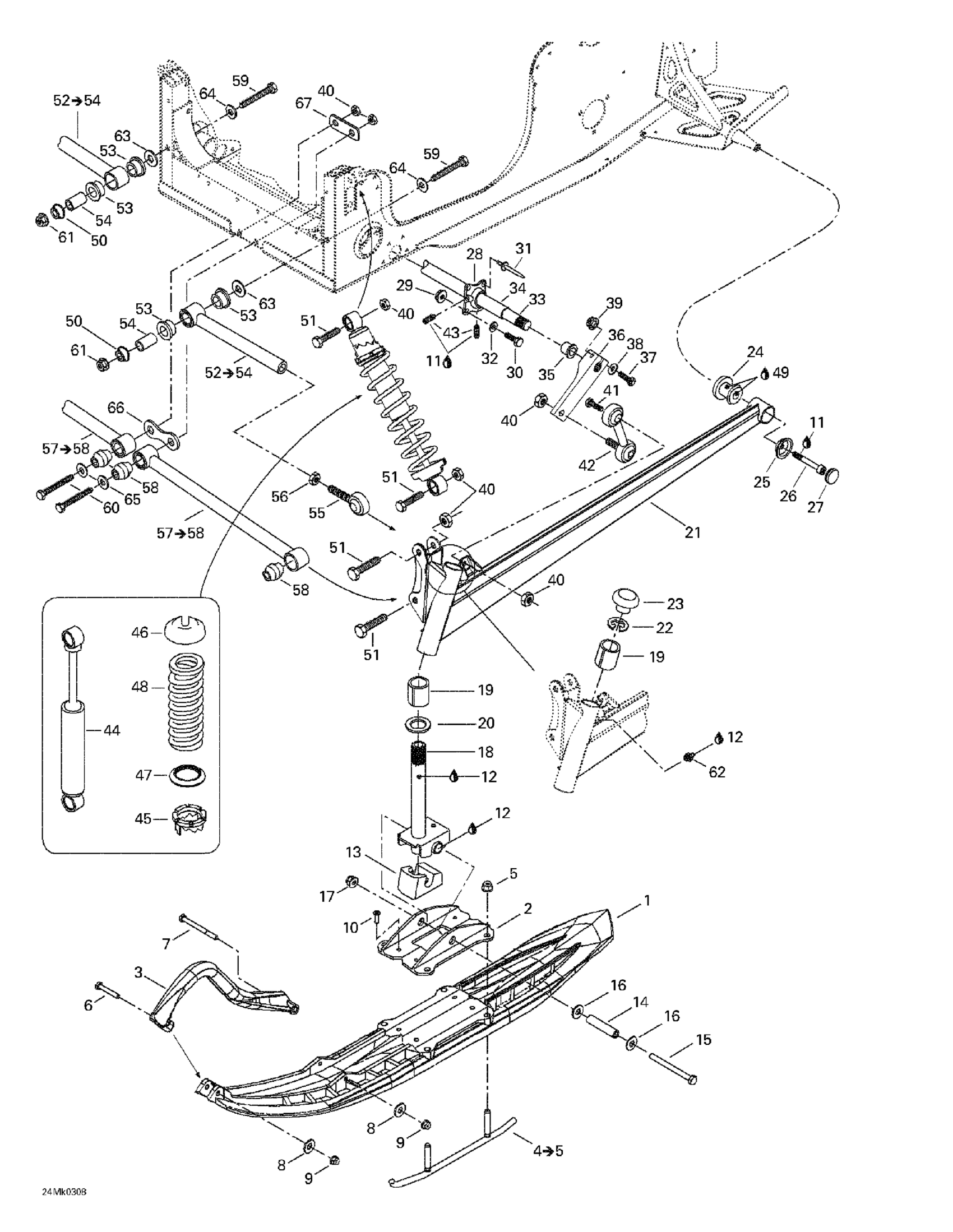 Ski-Doo Mach Z, 2003 Front Suspension And Ski Diagram
