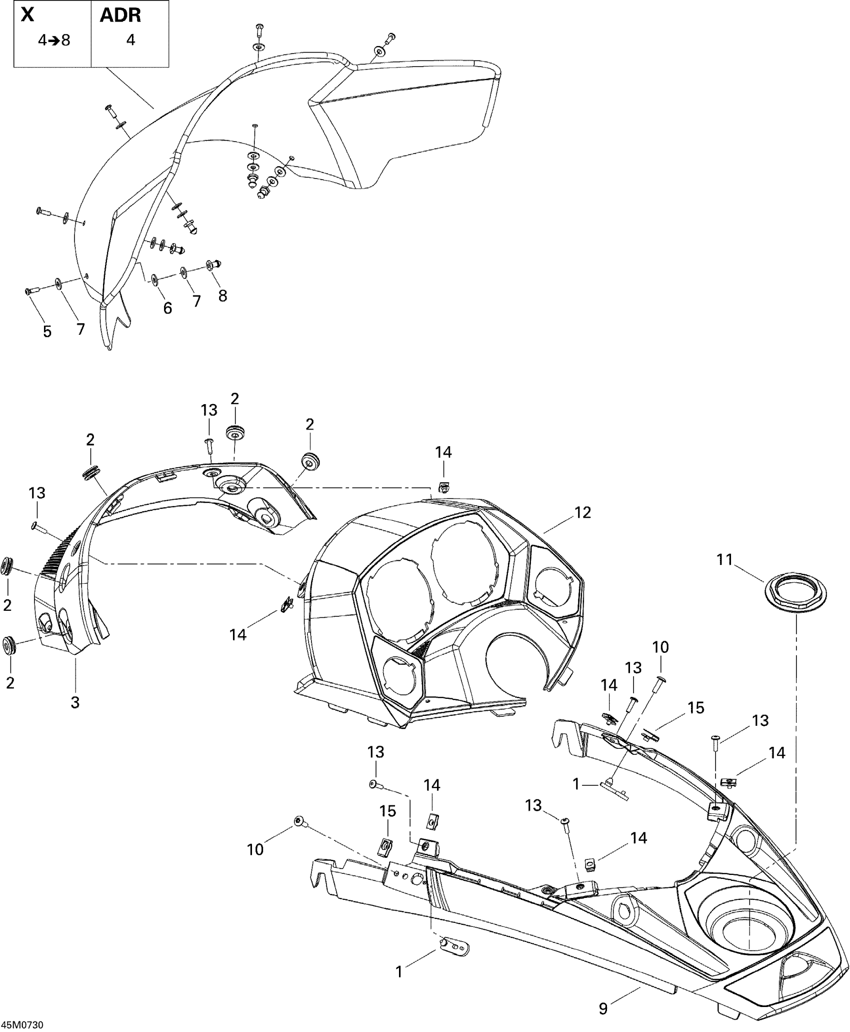 Ski-Doo MACH Z Adrenaline, 2007 Windshield And Console ADR Diagram