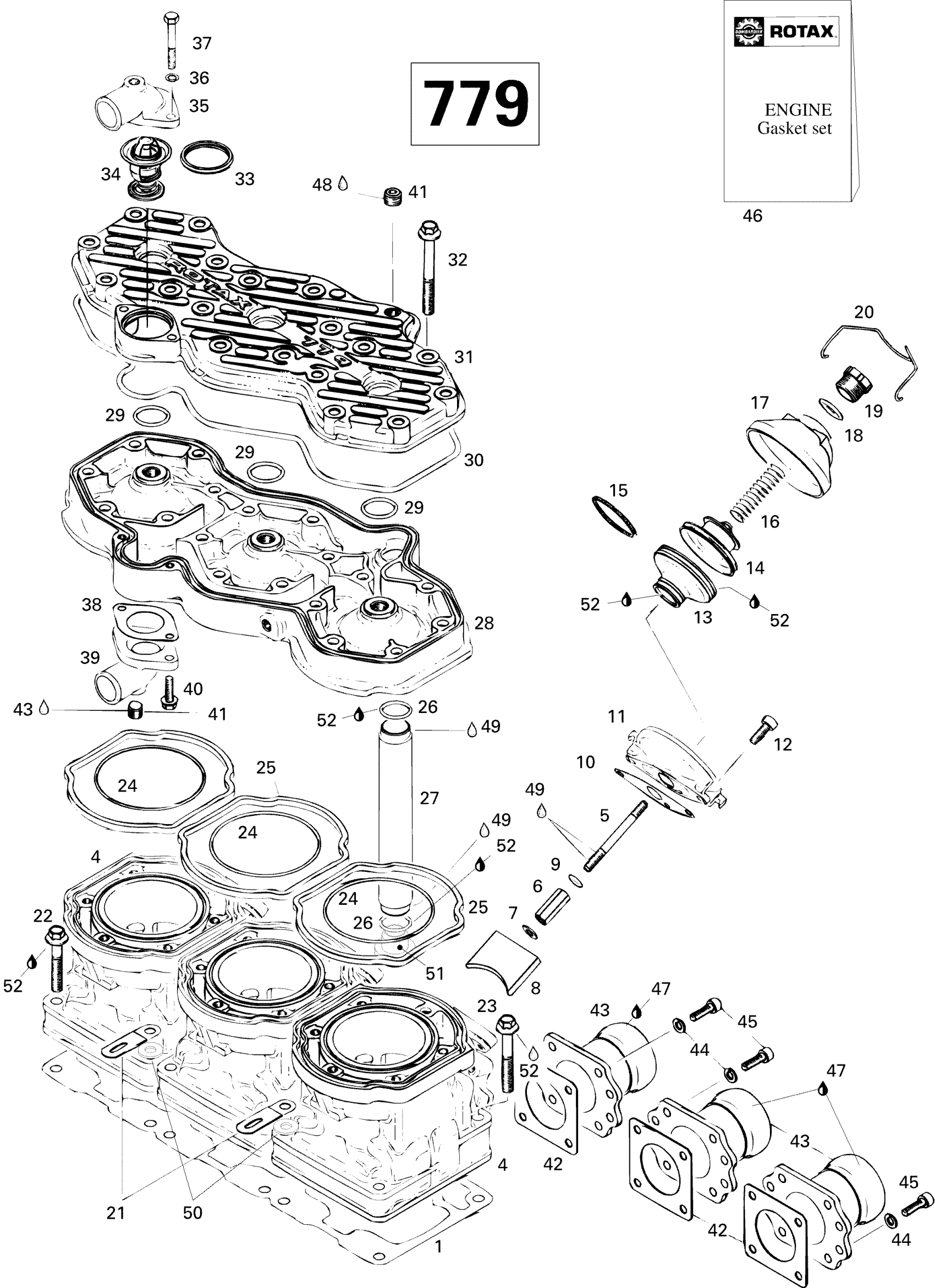 Ski-Doo Mach Z LT (2), 1996 Cylinder And Exhaust Manifold 779 Diagram