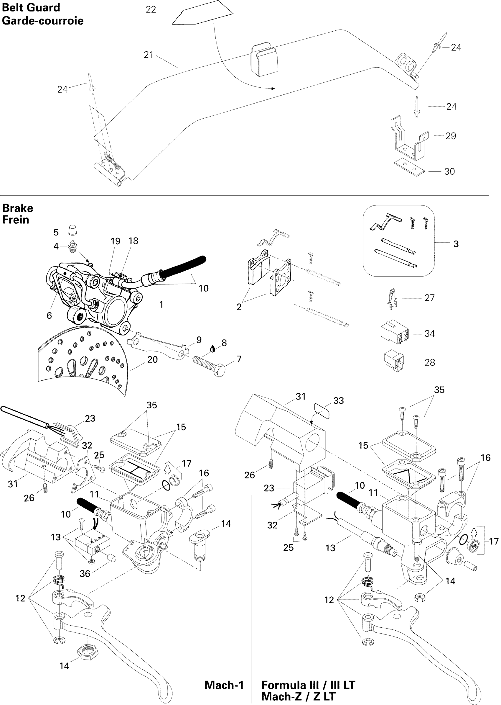 Ski-Doo Mach Z LT (2), 1996 Hydraulic Brake Mach Z, Z LT Diagram