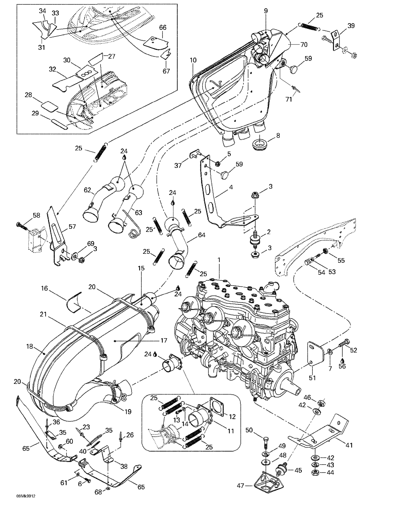 Ski-Doo Mach Z LT R, 1999 Engine Support And Muffler Diagram
