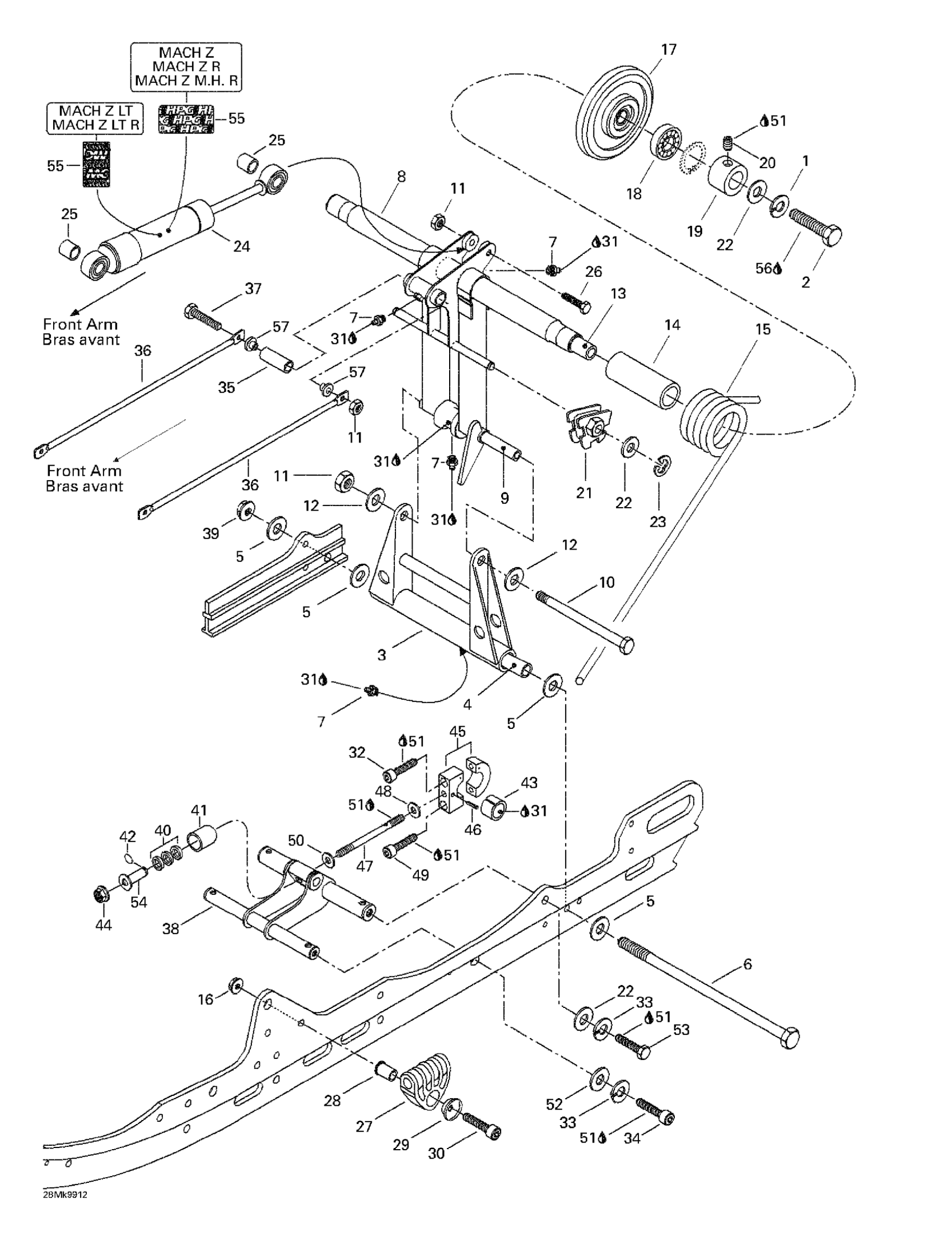 Ski-Doo Mach Z LT R, 1999 Rear Arm, Rear Suspension Diagram