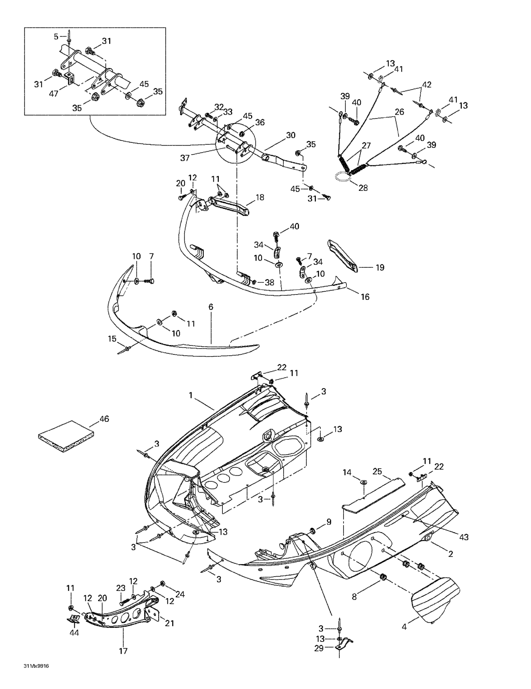 Ski-Doo Mach Z LT (SV Track), 1998 Bottom Pan Diagram