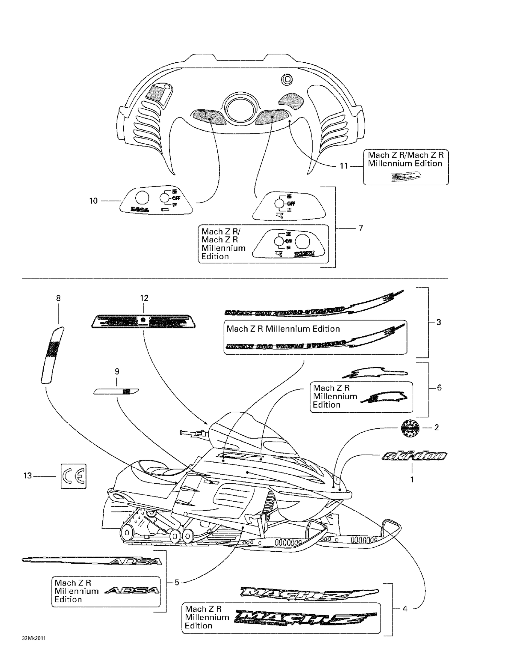 Ski-Doo Mach Z R Millennium Edition, 2000 Decals Diagram