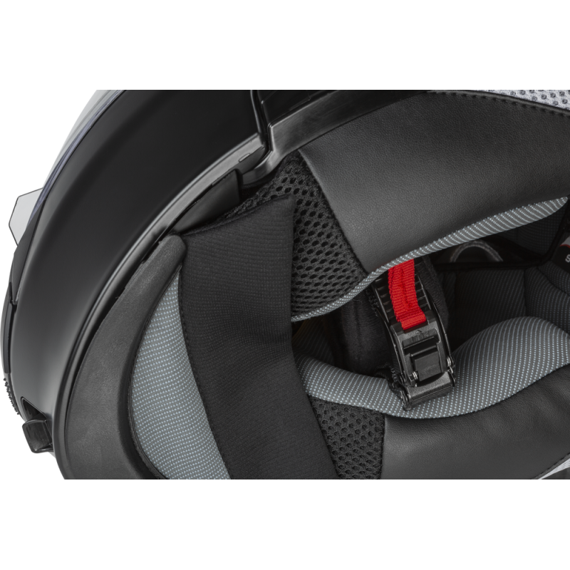 - Easy to use chin bar with push to open mechanism designed for use with gloves on