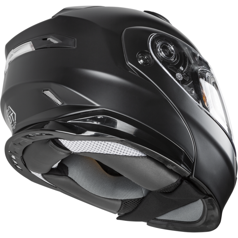 - Helmet includes clear dual lens shield, cold weather breath box and chin curtain