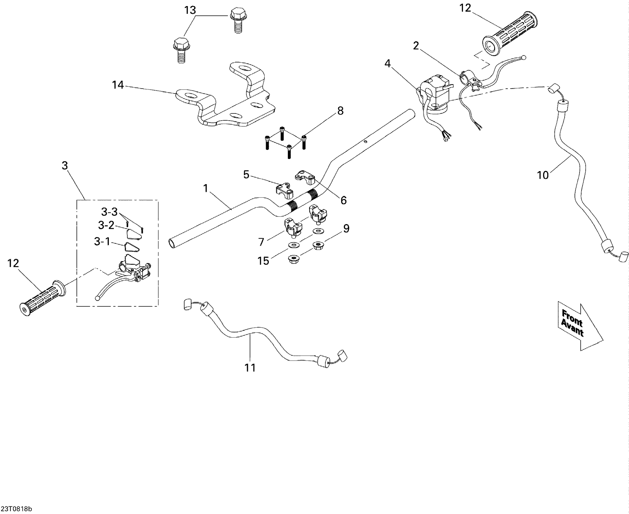 Can-Am Mini DS 90cc 4T Jaune, 2008 Handlebar Diagram