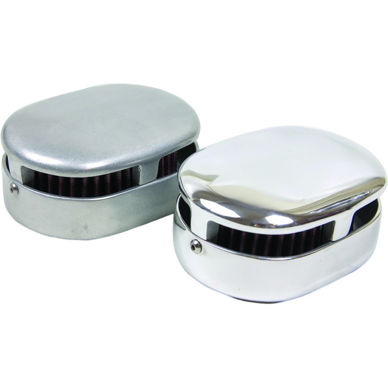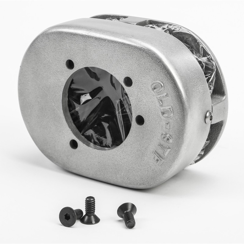 The "Mini Ed" air cleaner measures only 5.5" x 4" x 2 5/8" and has a vintage hot rod look in natural tumbled cast aluminum. If your tired of the typical round filters, tear drops or deflectors then this is perfect for you. Made in USA by Old-Stf cycle and includes a K&N high flow filter element made in the USA.