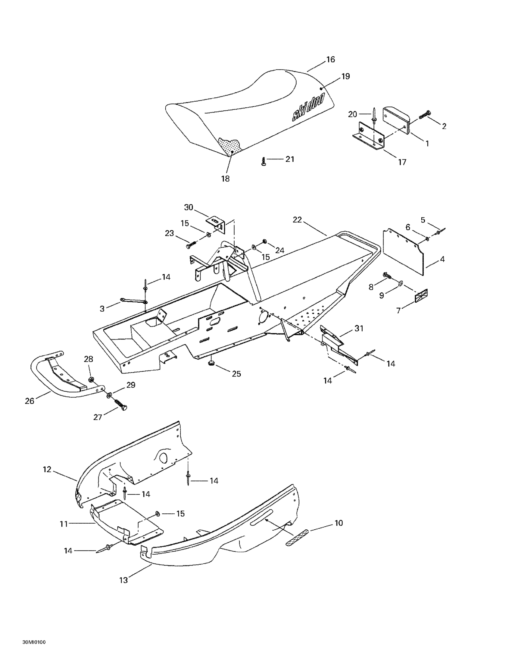 Ski-Doo Mini Z, 2001 Frame And Body Diagram