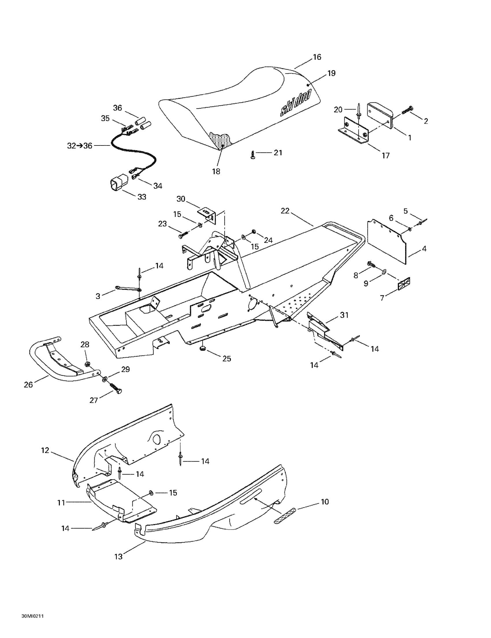 Ski-Doo Mini Z, 2002 Frame And Body Diagram