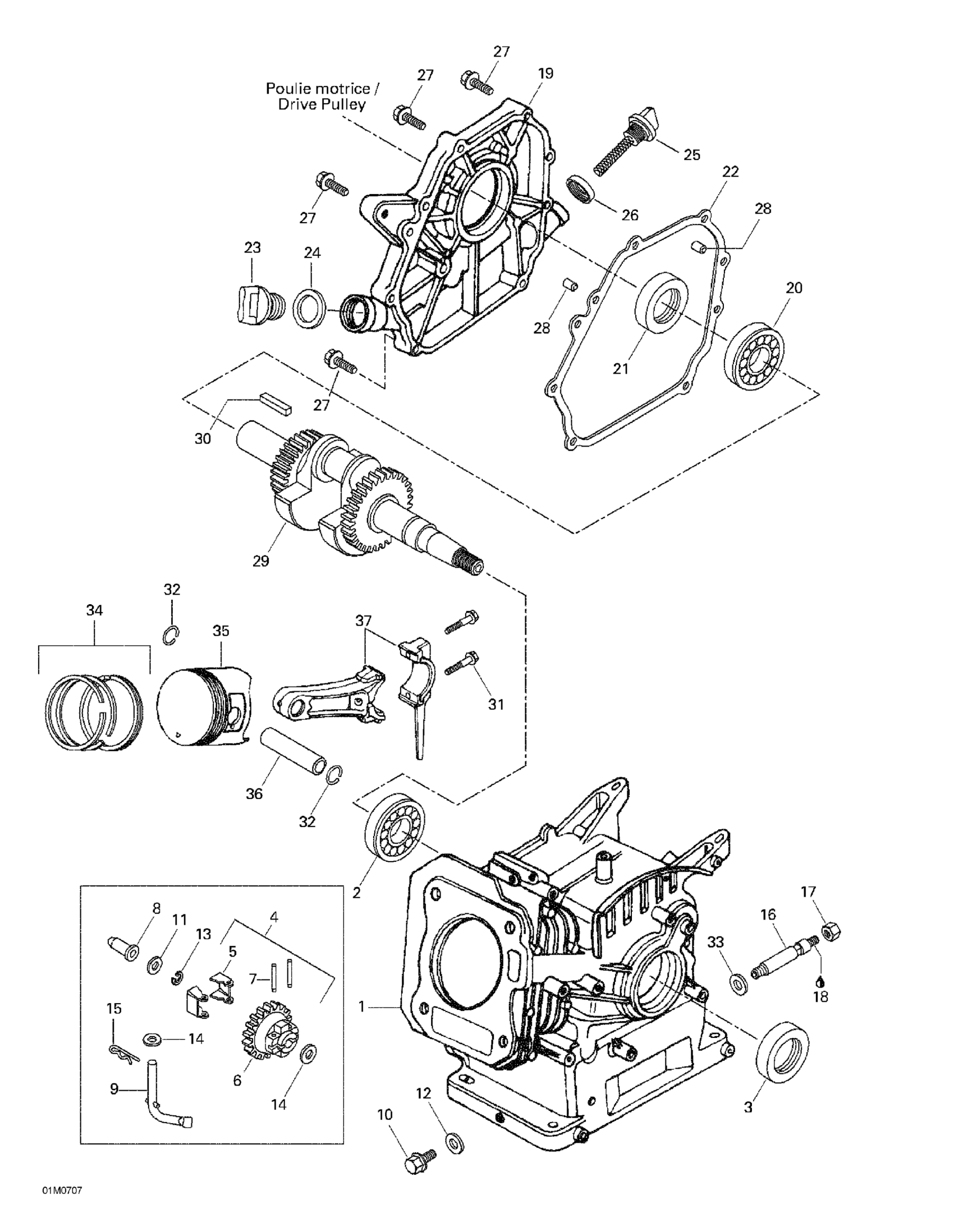 Ski-Doo Mini Z, 2007 Crankcase, Barrel, Crankshaft, Piston Diagram