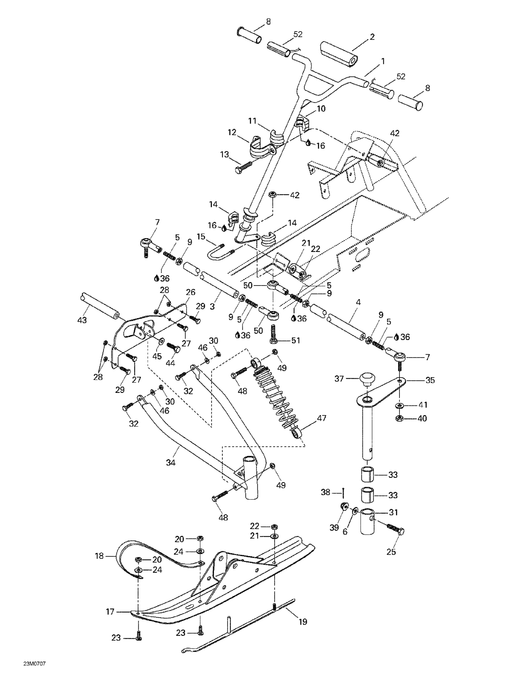Ski-Doo Mini Z, 2007 Steering System And Ski Diagram