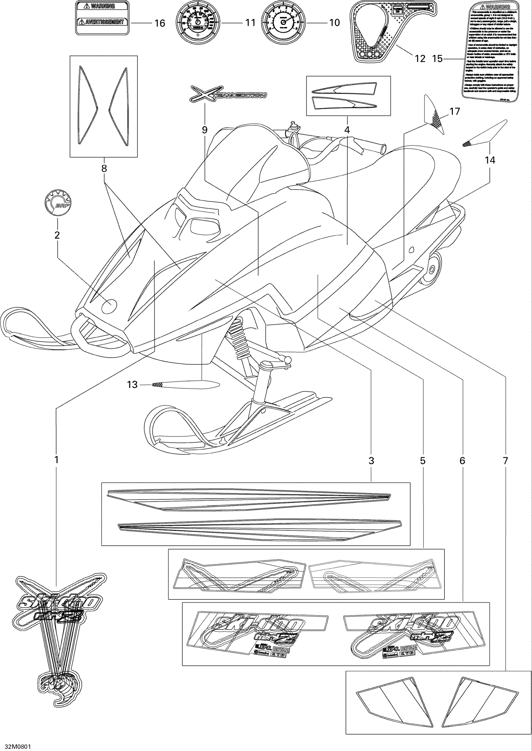 Ski-Doo Mini Z, 2008 Decals Diagram