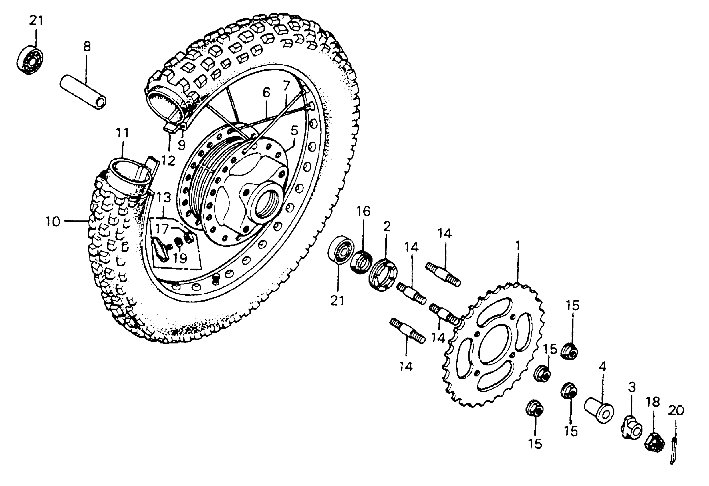 Honda MR175A (77) ELSINORE, JPN, VIN# MR175-2100001 TO MR175-2102110 REAR WHEEL Diagram