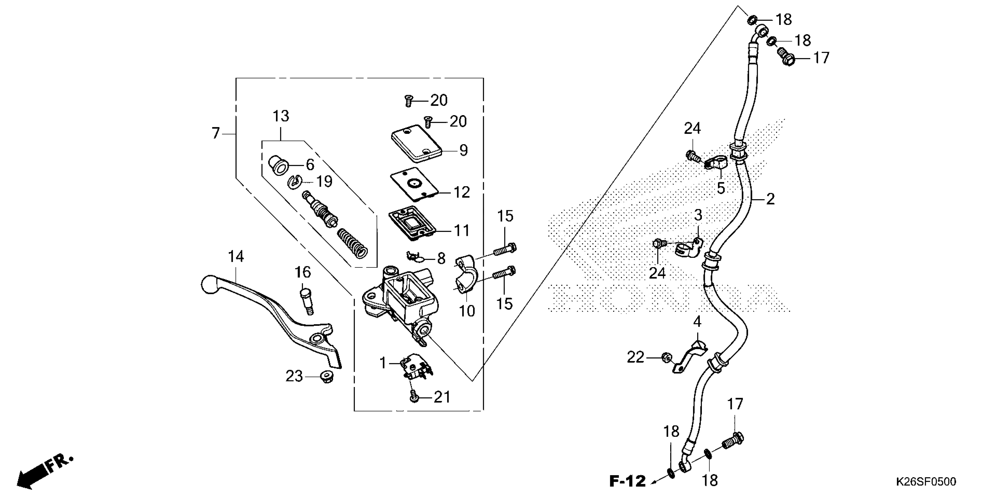 Honda MSX1252AC (25) MOTORCYCLE, THA, VIN# MLHJC921-S5300001 TO MLHJC921-S5399999 FRONT BRAKE MASTER CYLINDER (GROM125) Diagram