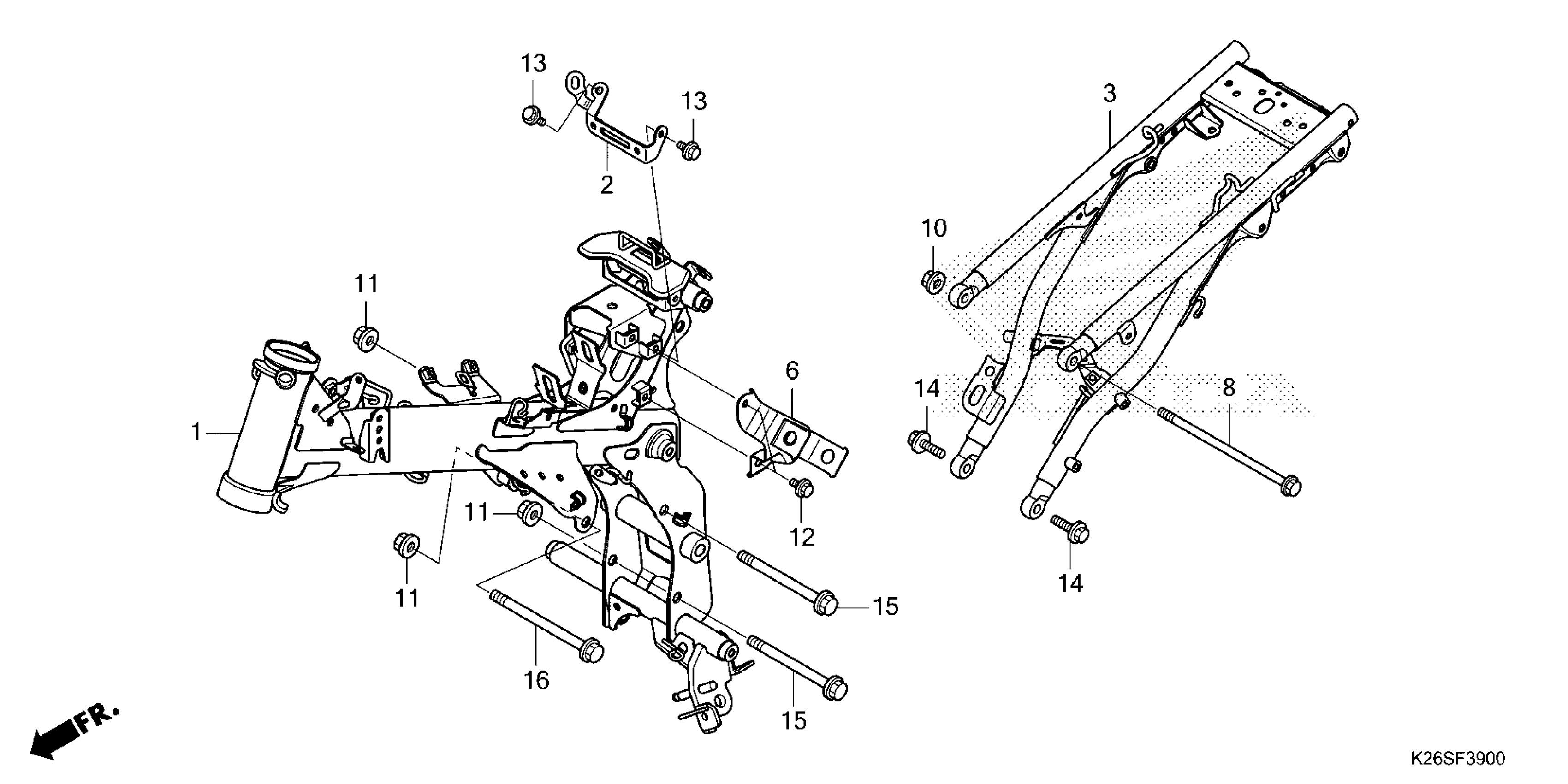 Honda MSX125AC (25) MOTORCYCLE, THA, VIN# MLHJC921-S5300001 TO MLHJC921-S5399999 FRAME Diagram