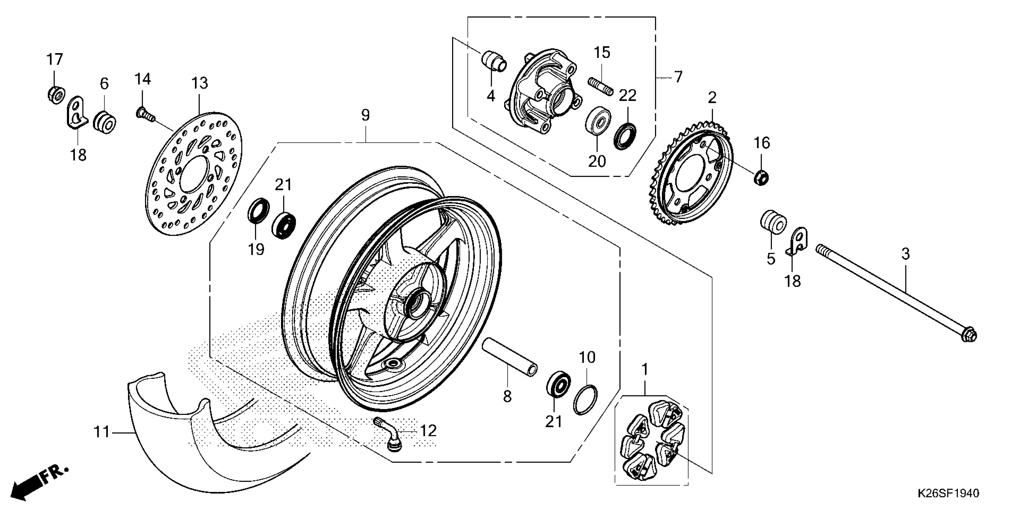 Honda MSX125AC (25) MOTORCYCLE, THA, VIN# MLHJC921-S5300001 TO MLHJC921-S5399999 REAR WHEEL Diagram