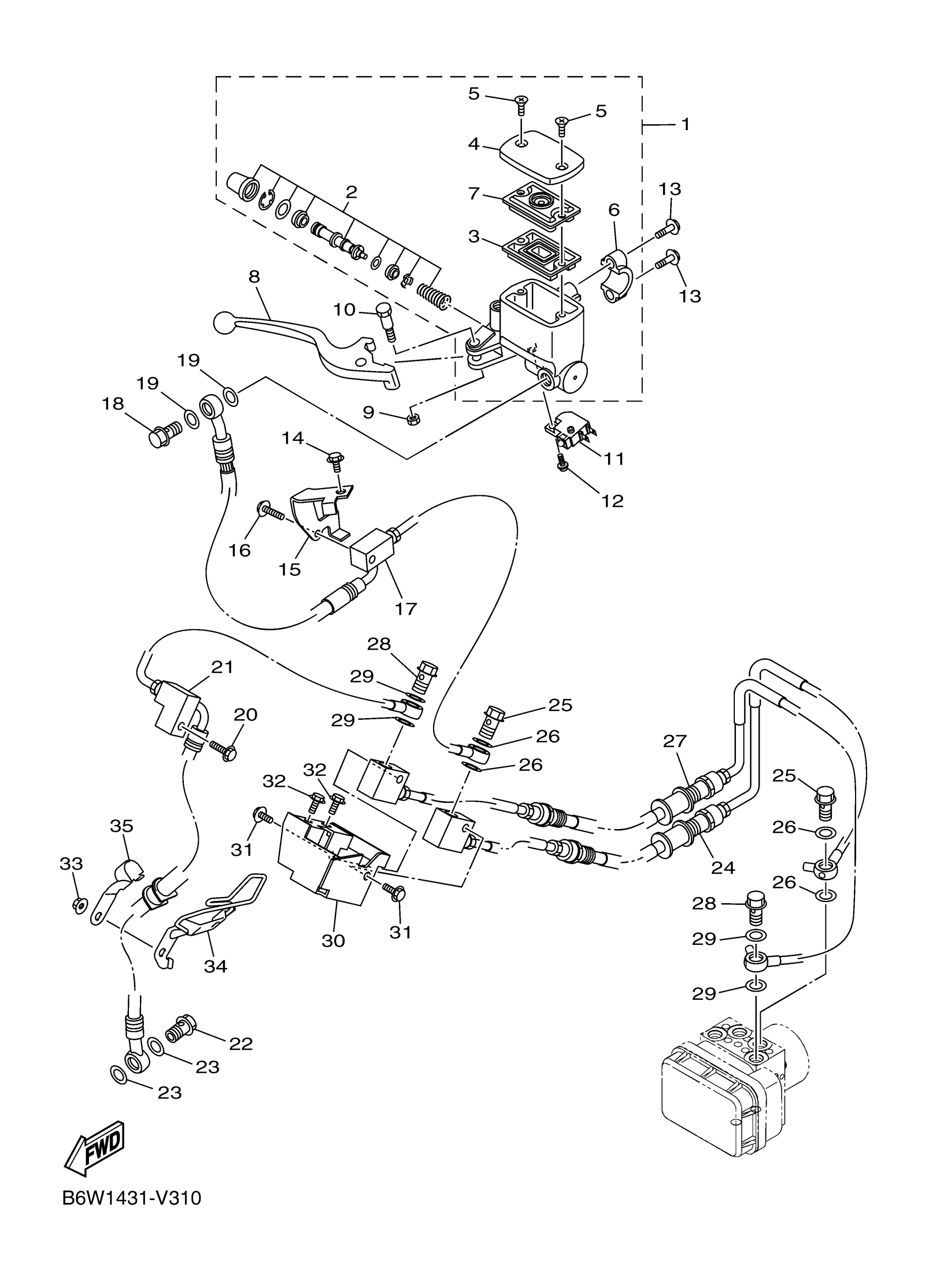 Yamaha MT03LGY (MT03) B5W20 2020 FRONT MASTER CYLINDER Diagram
