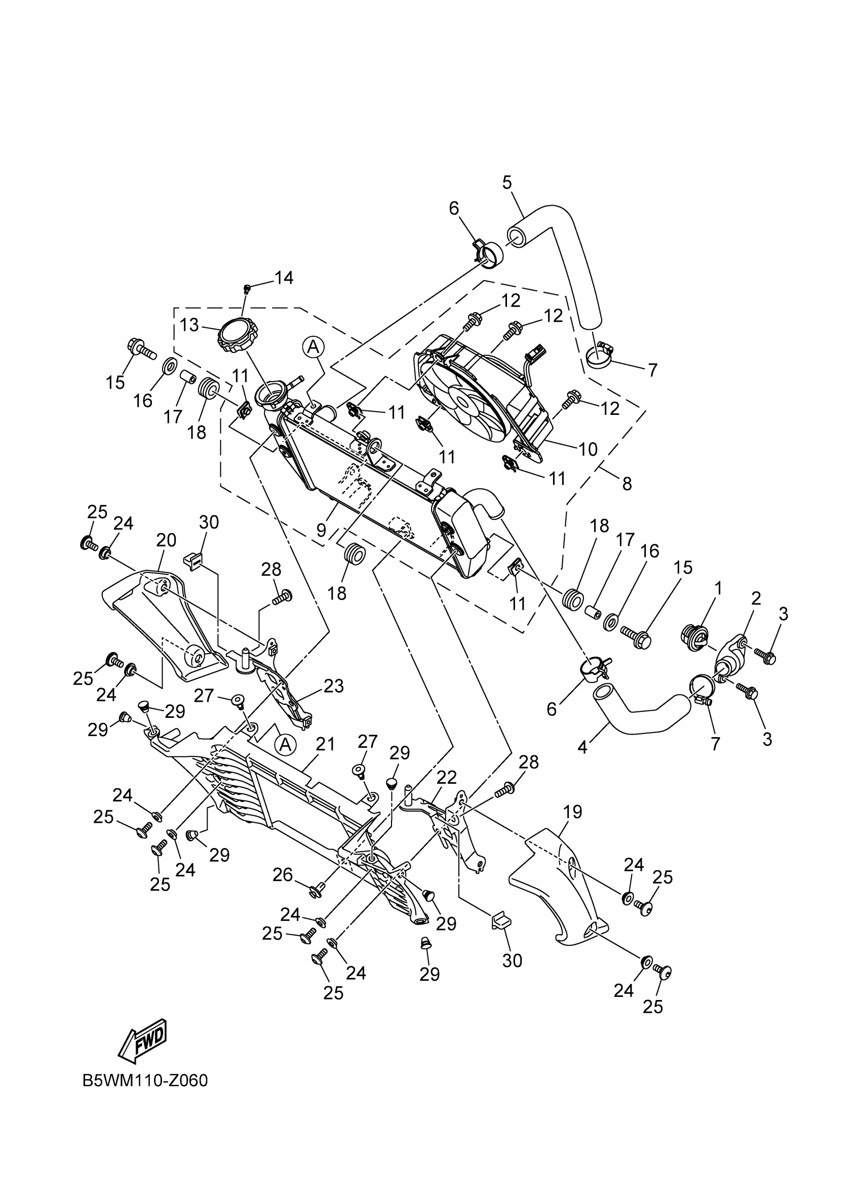 Yamaha MT03RGY (MT-03) B5WM 2024 RADIATOR & HOSE Diagram