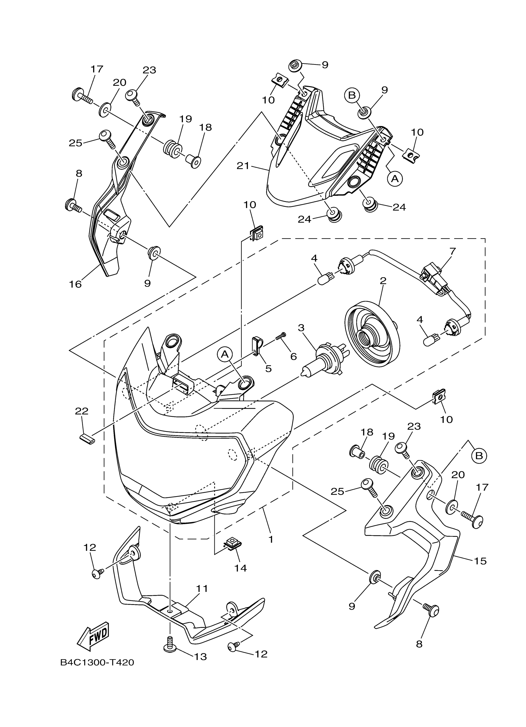 Yamaha MT07LL (MT07) B4CJ 2020 HEADLIGHT Diagram