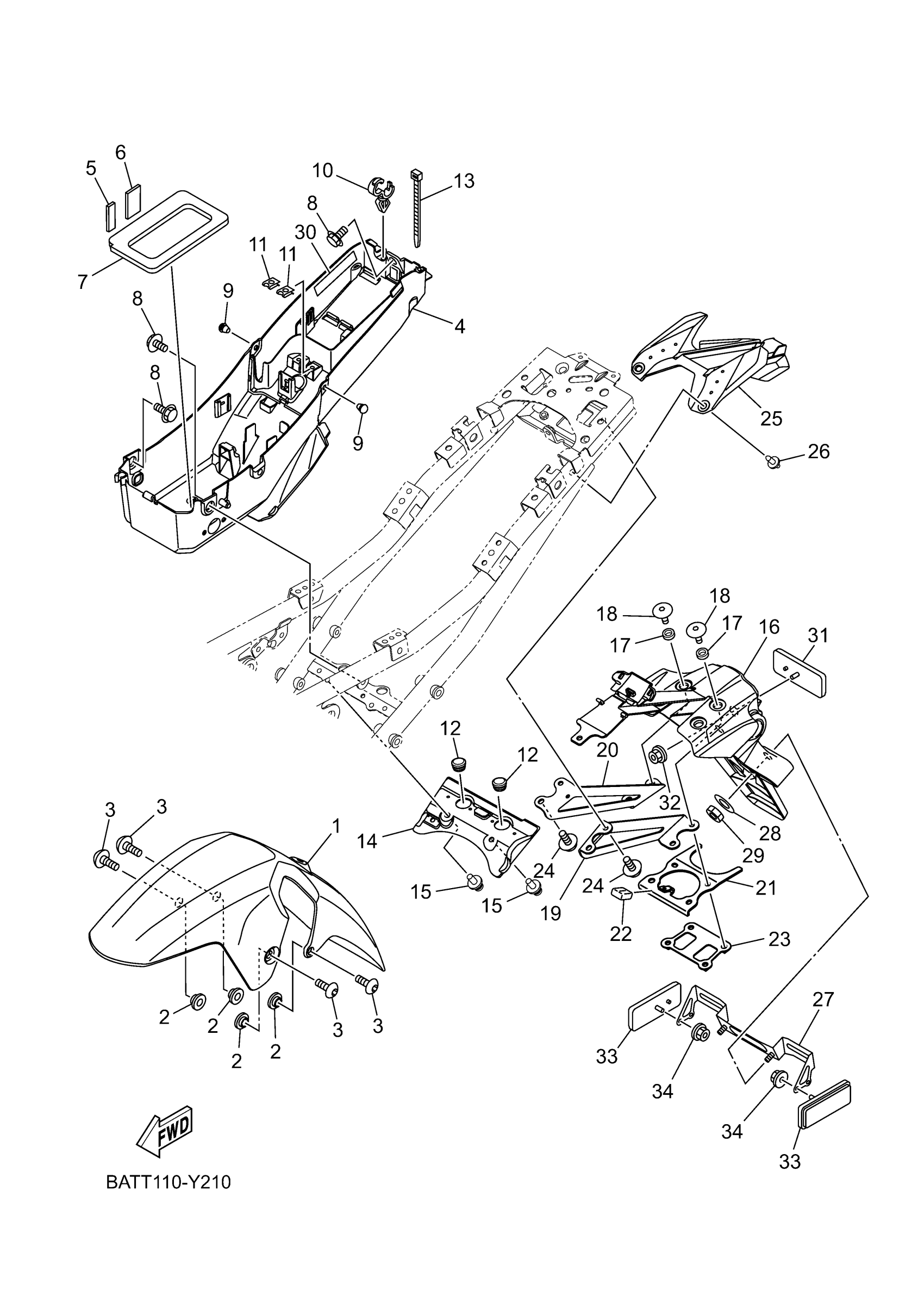 Yamaha MT07PL (MT07) BATT 2023 FENDER Diagram