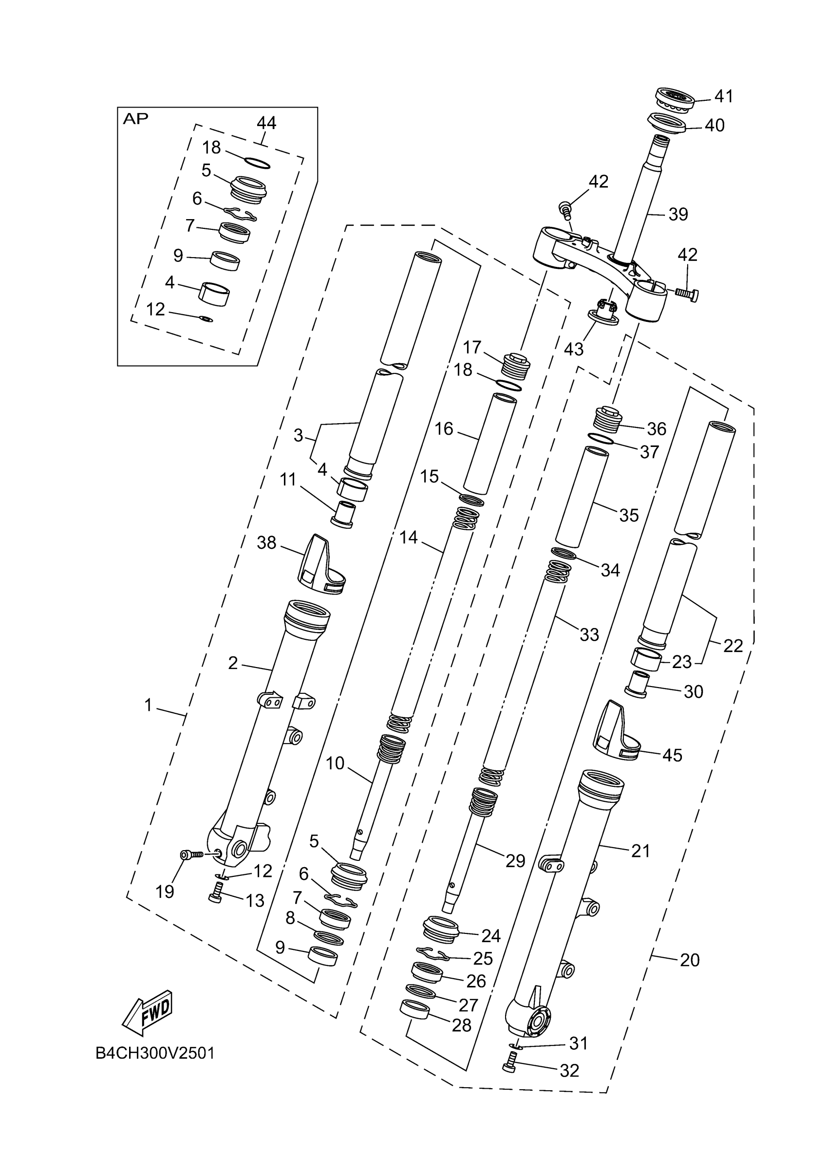 Yamaha MT07PL (MT07) BATT 2023 FRONT FORK Diagram