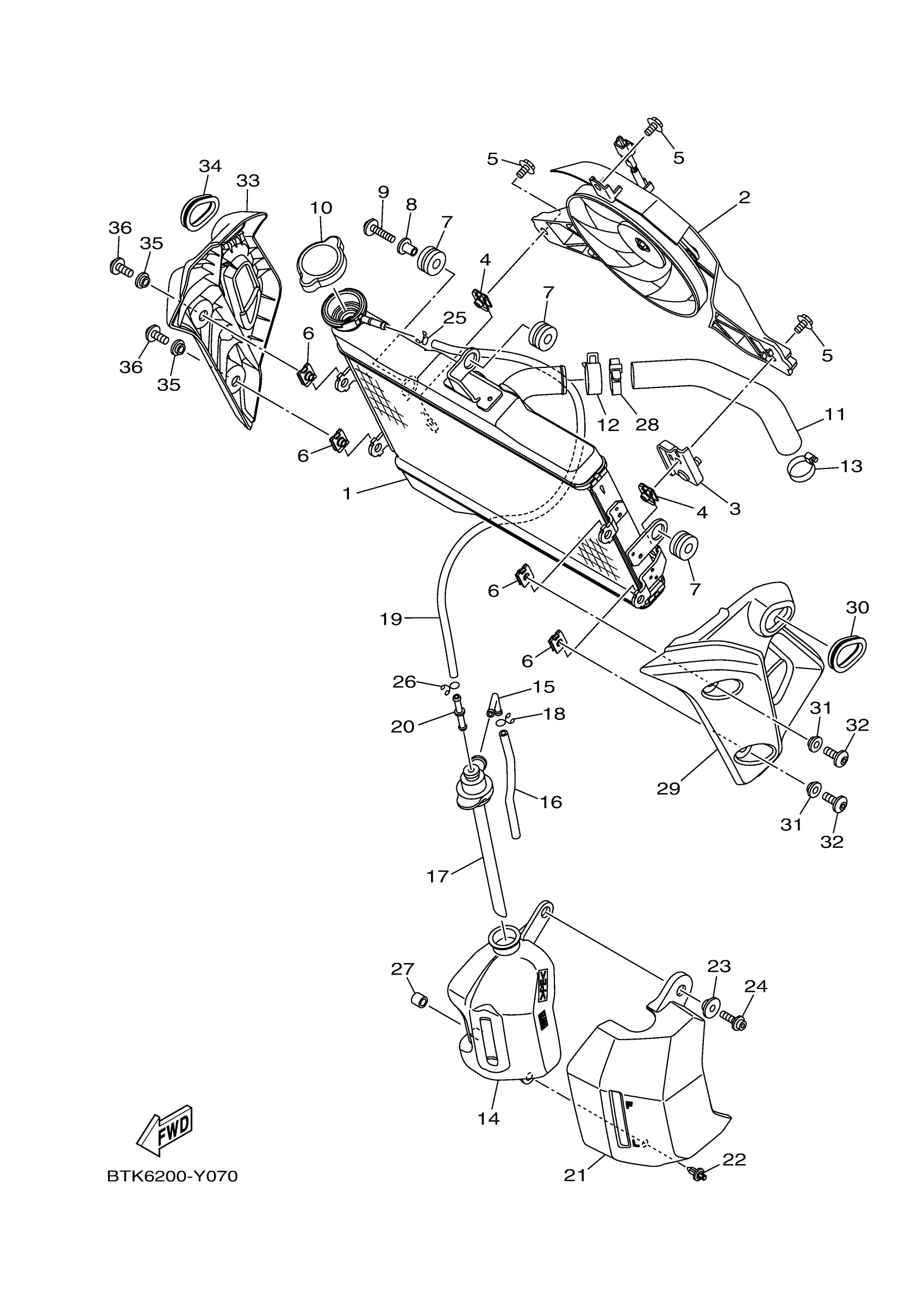 Yamaha MT07PL (MT07) BATT 2023 RADIATOR & HOSE Diagram