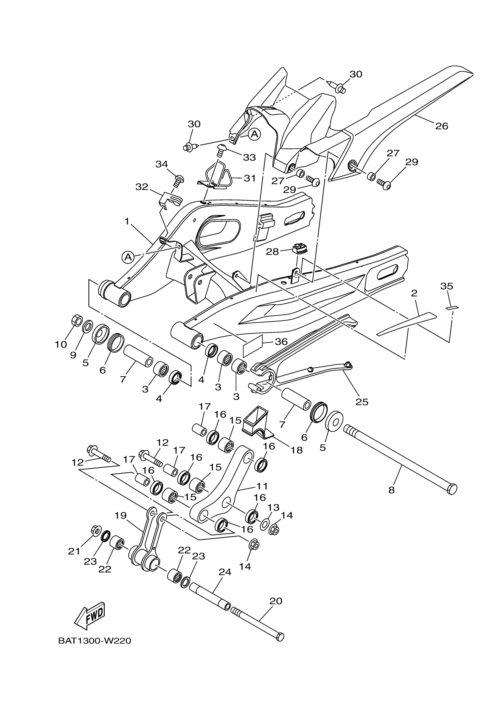 Yamaha MT07PL (MT07) BATT 2023 REAR ARM Diagram