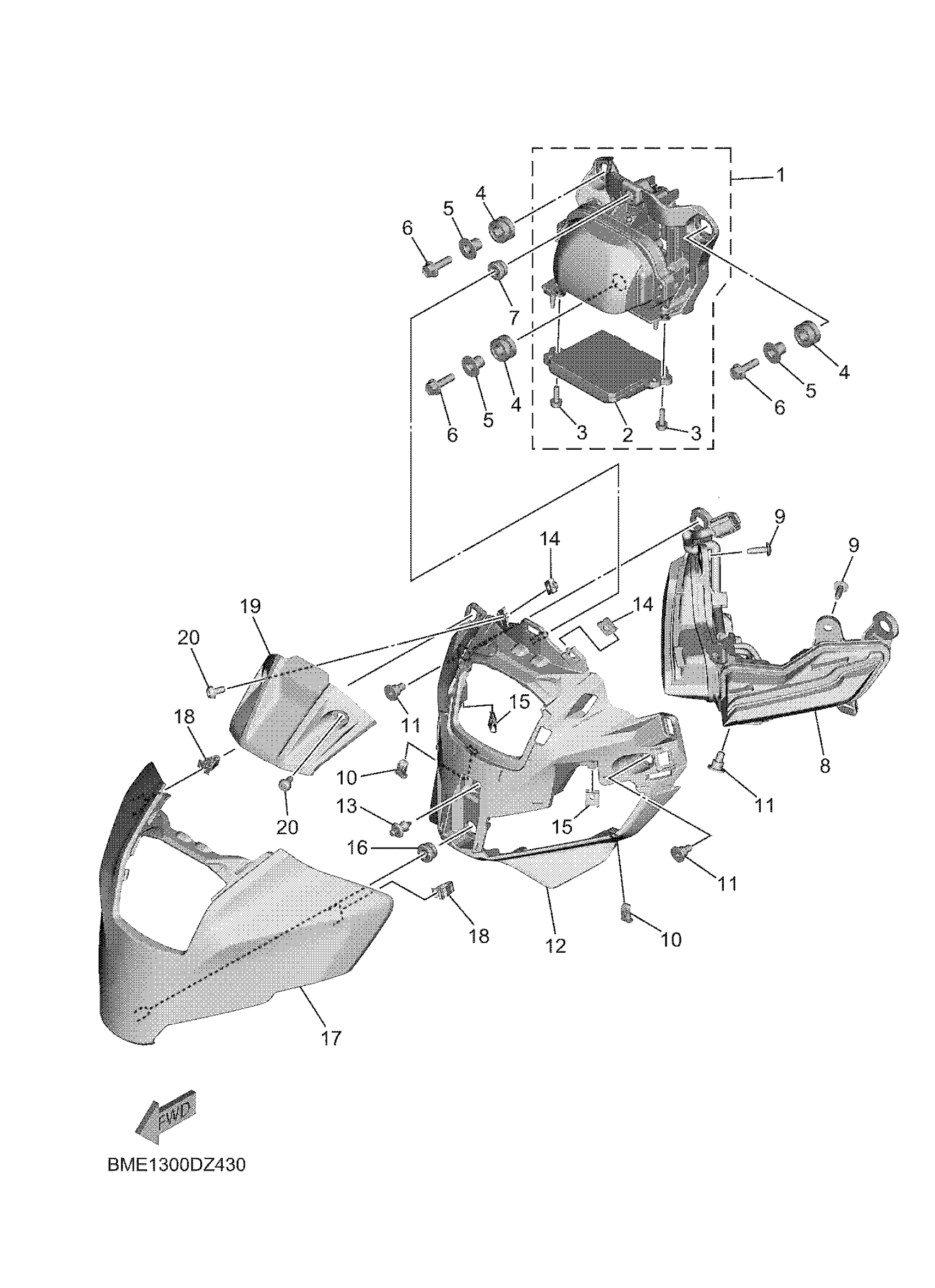 Yamaha MT09SL (MT09) BMEK 2025 HEADLIGHT Diagram