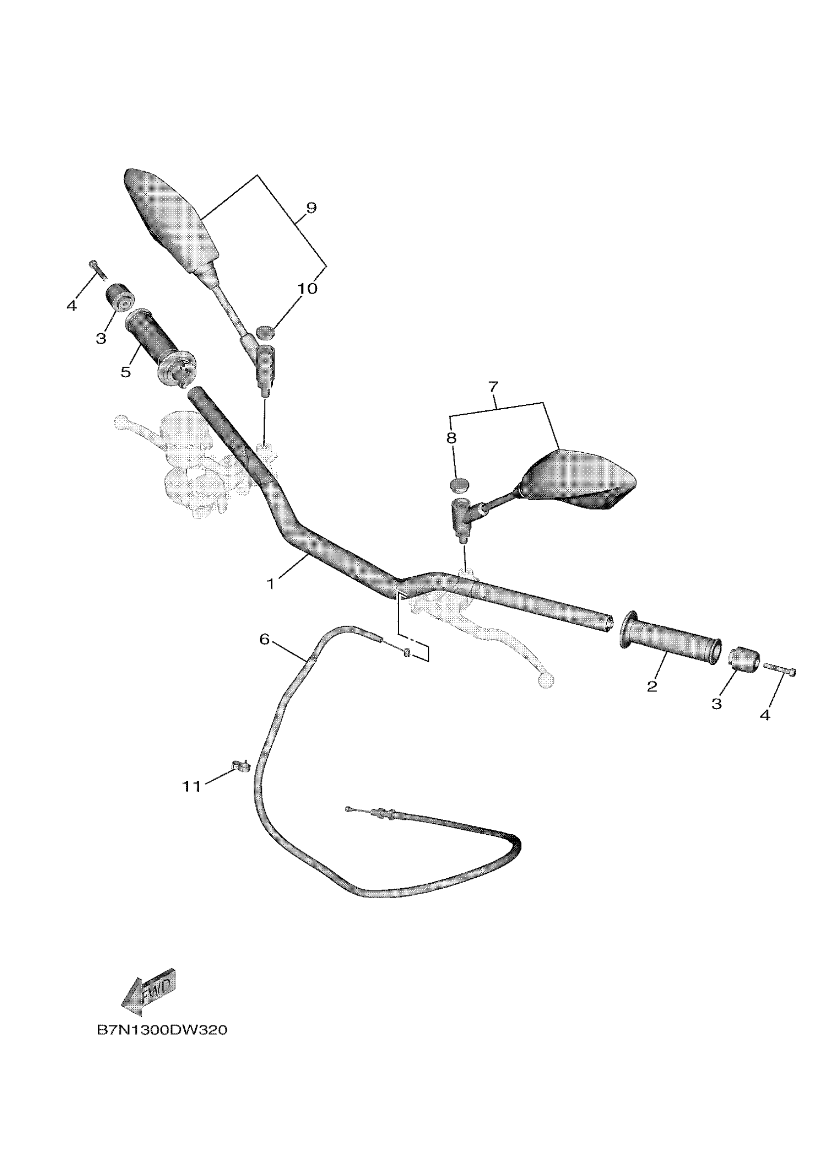 Yamaha MT09SPNS (MT09 SP) BAMB 2022 STEERING HANDLE & CABLE Diagram