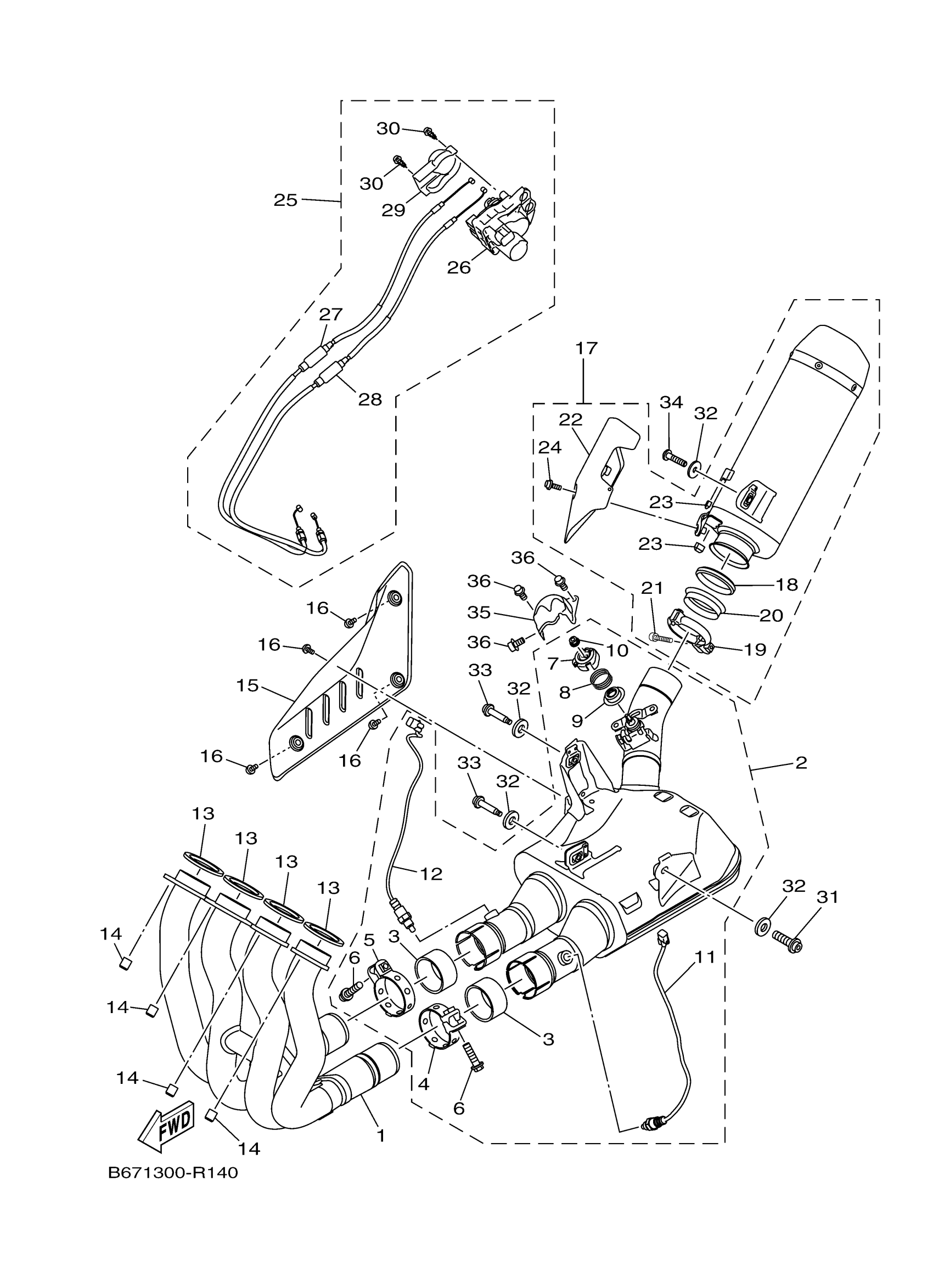 Yamaha MT10JL (MT10) B6790 2018 EXHAUST Diagram
