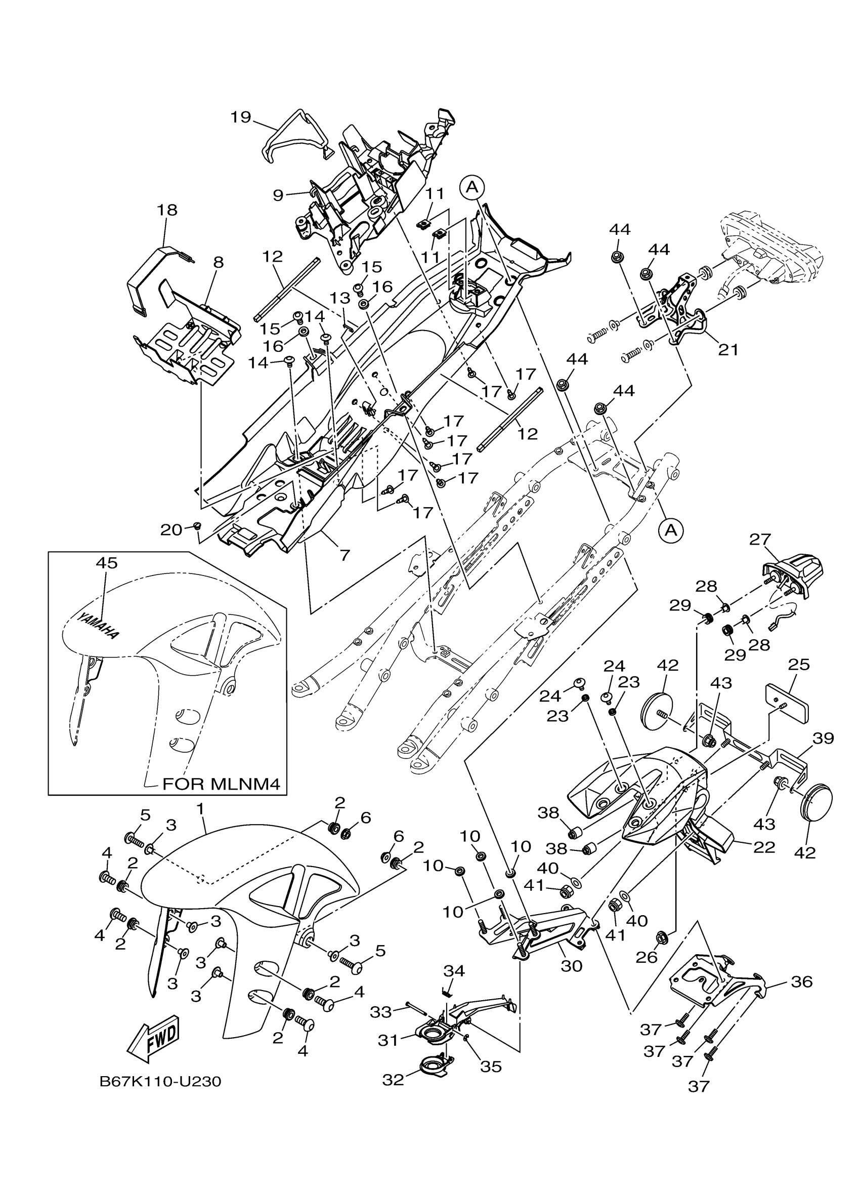 Yamaha MT10KGY (MT10) B67K0 2019 FENDER Diagram