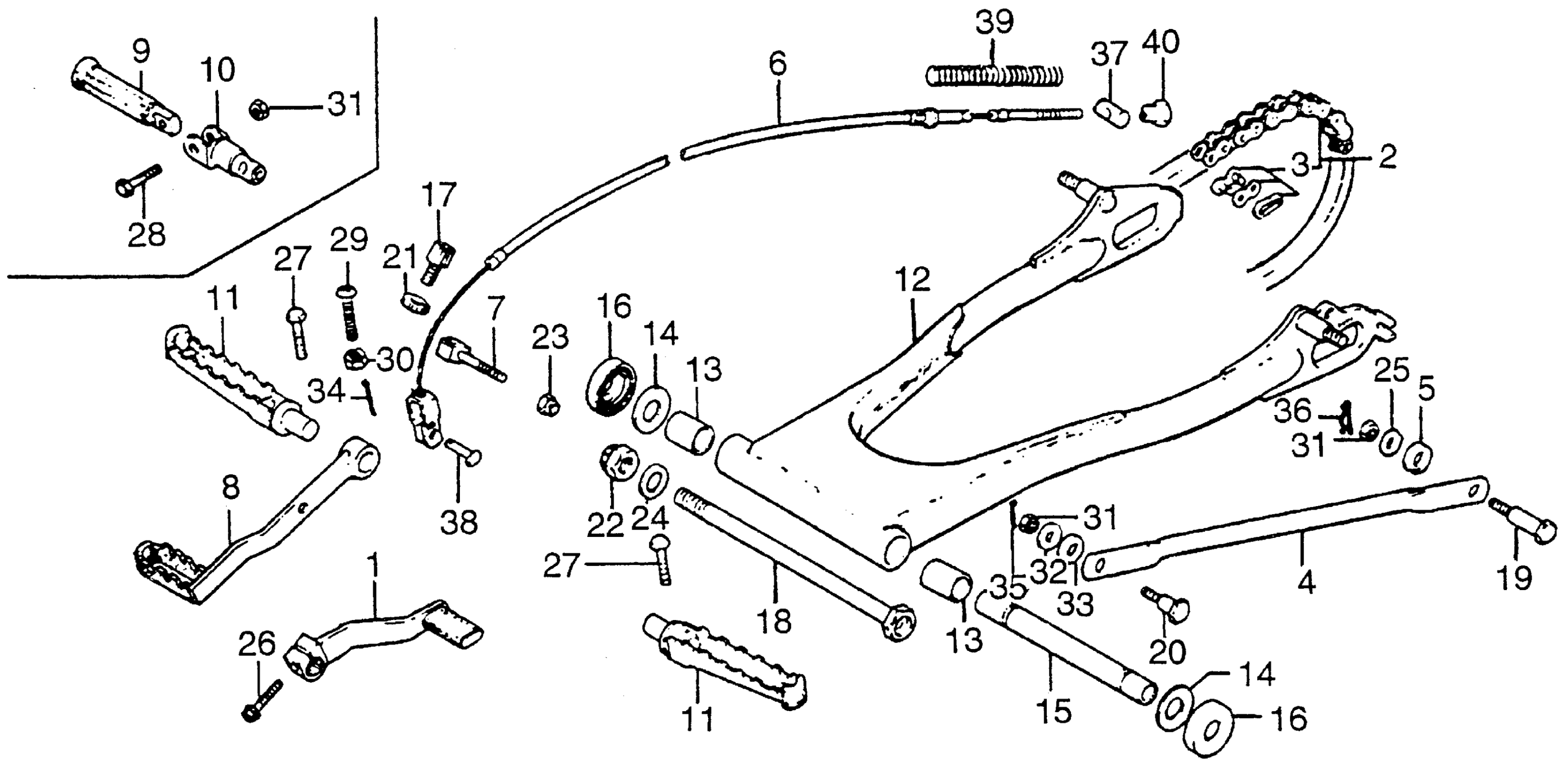 Honda MT125RA (78) MOTORCYCLE, JPN, VIN# 125R2F-1081 SWINGARM + STEP Diagram