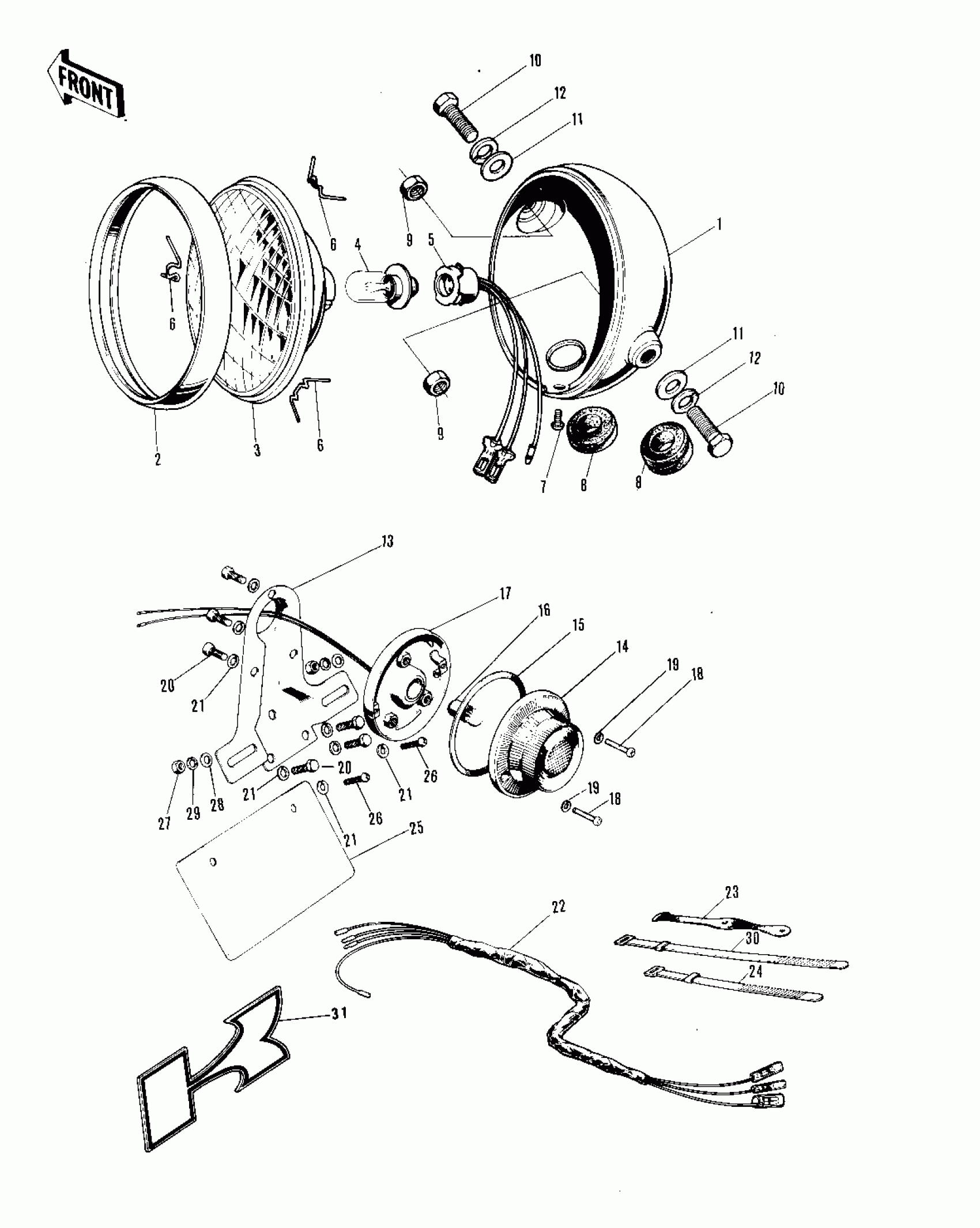 Kawasaki MT1C HEADLIGHT/TAILLIGHT/CHASSIS ELECTRICAL E Diagram
