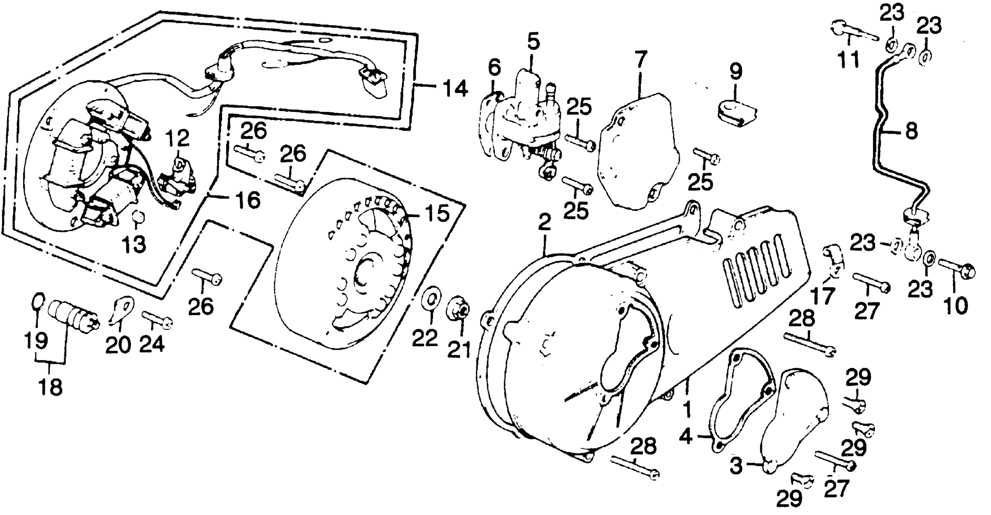 LEFT CRANKCASE COVER + ALTERNATOR + OIL PUMP