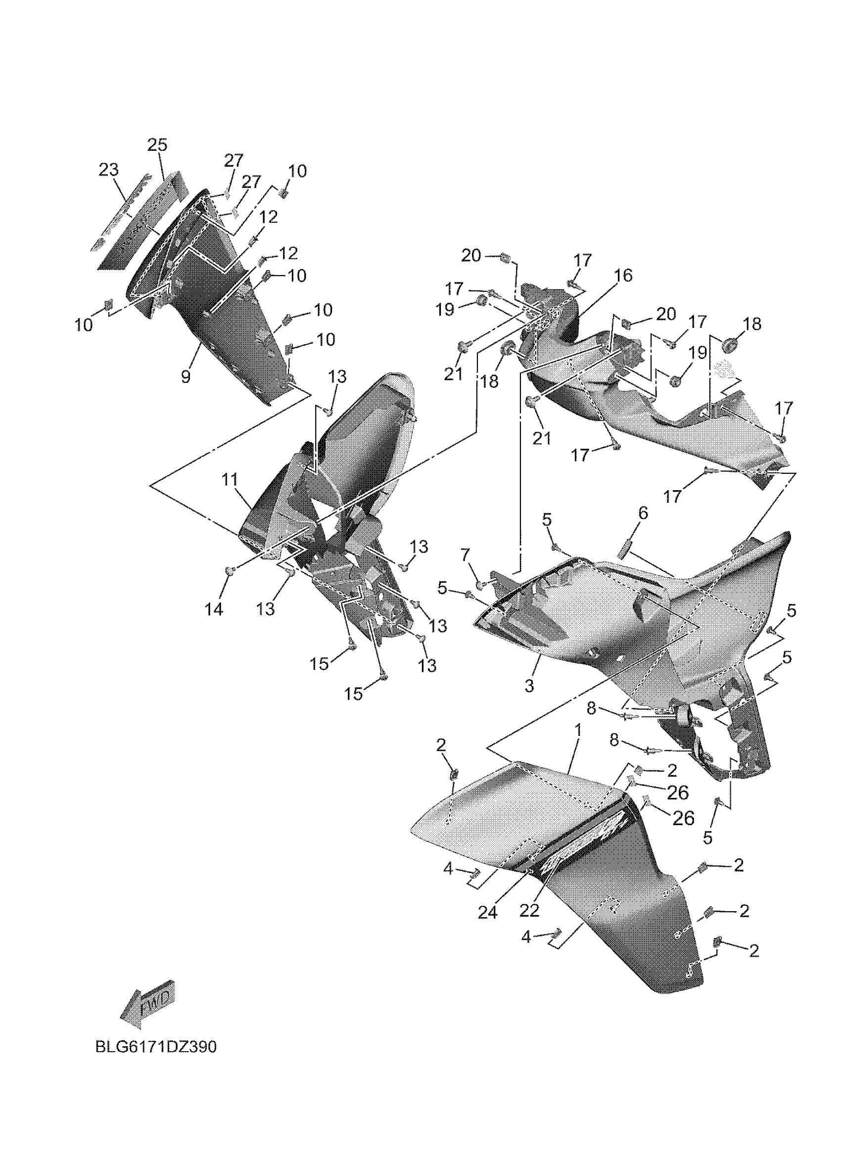 Yamaha MTT9GPRGY (TRACER 9 GT) BLG4 2024 COWLING Diagram