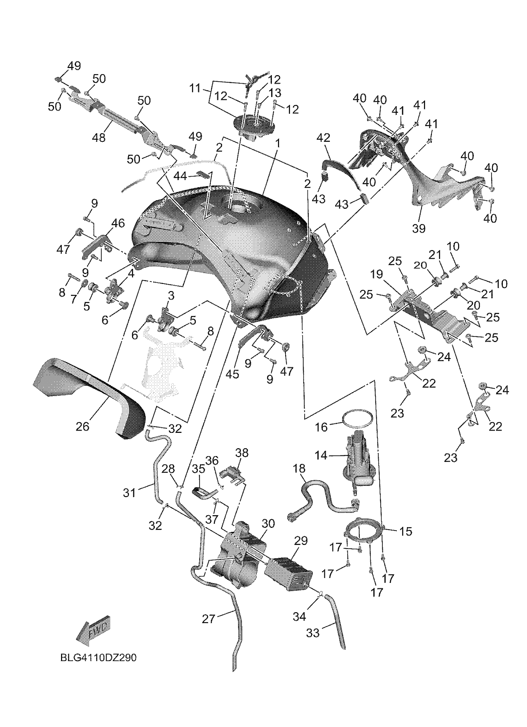 Yamaha MTT9GPRGY (TRACER 9 GT) BLG4 2024 FUEL TANK 2 (FOR CAL) Diagram