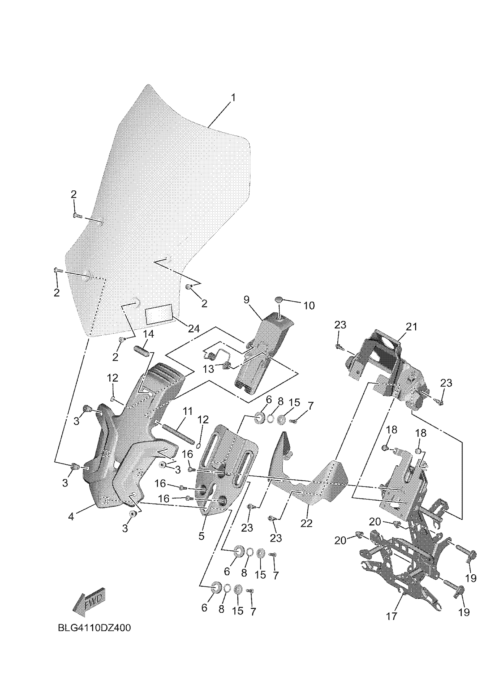 Yamaha MTT9GPRGY (TRACER 9 GT) BLG4 2024 WINDSHIELD Diagram