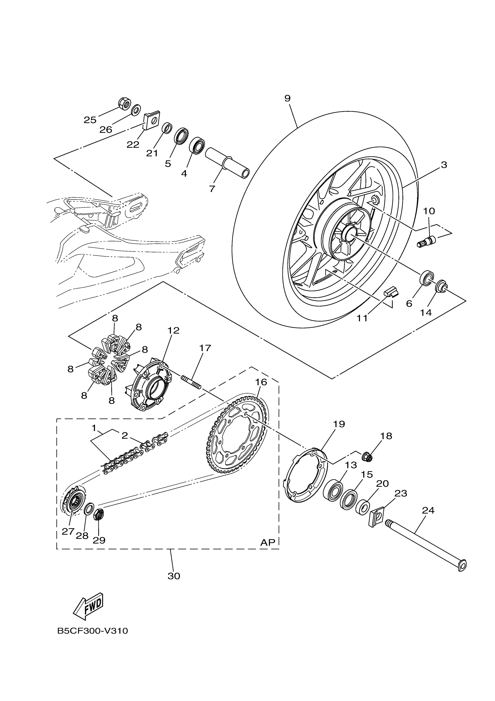 Yamaha MTT9GTLCB (TRACER 900 GT CA) B1JH 2020 REAR WHEEL Diagram