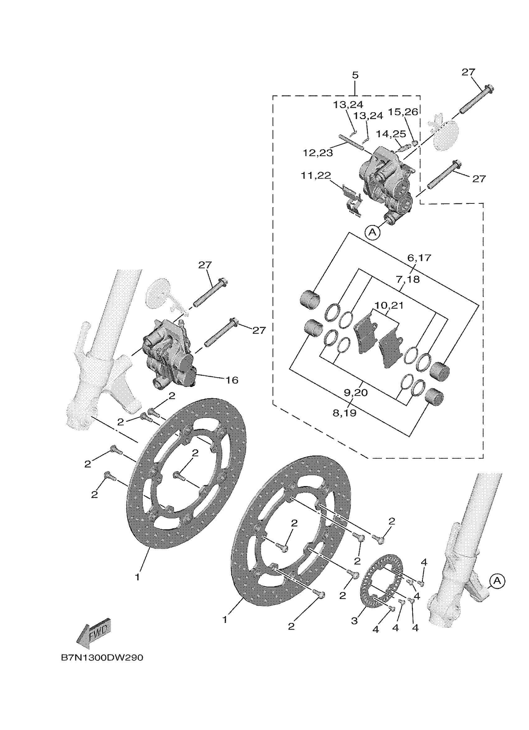 Yamaha MTT9GTMS (TRACER 9 GT) BAP51 2021 FRONT BRAKE CALIPER Diagram