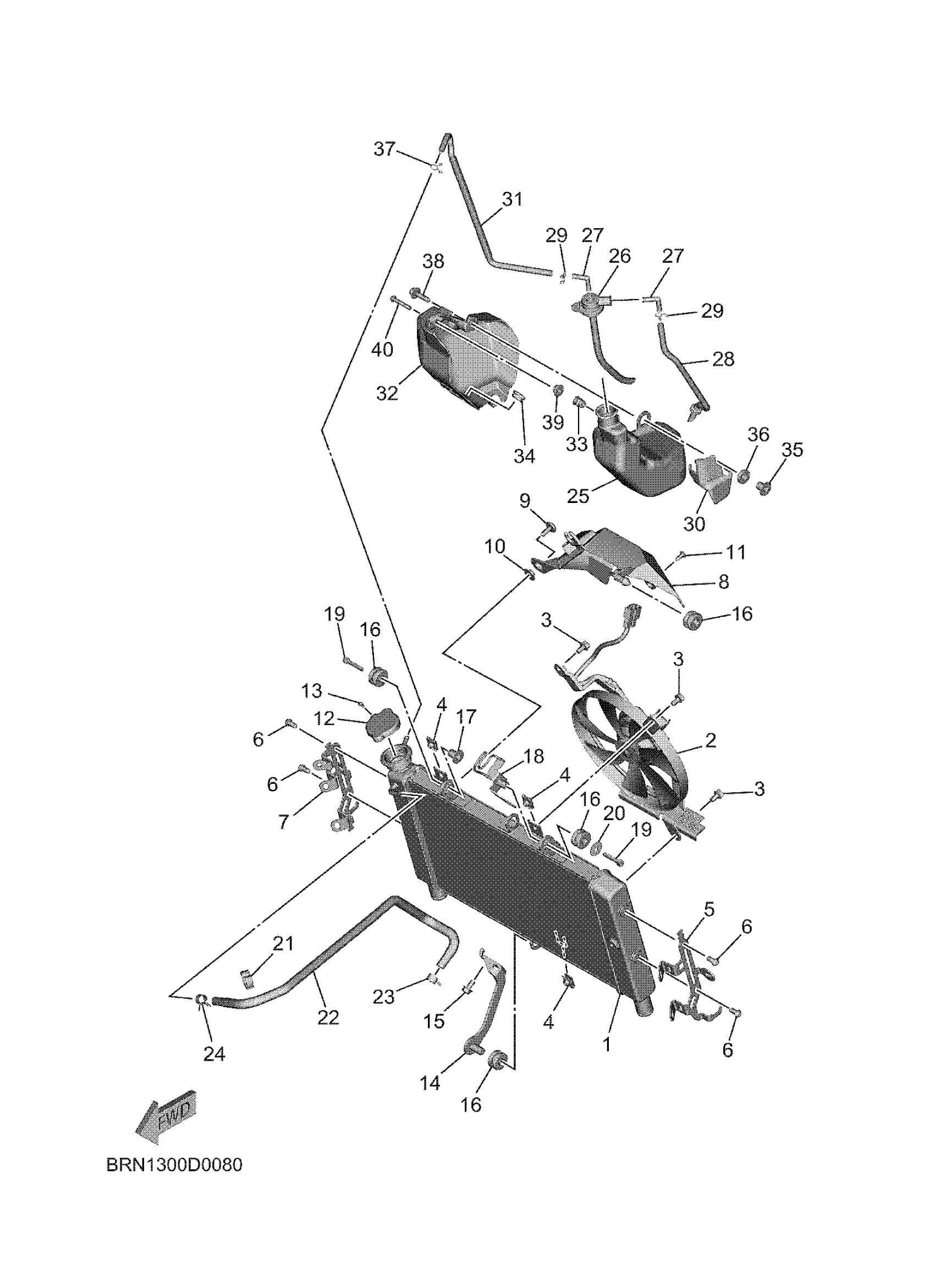 Yamaha MTT9SCB (TRACER 9 CA) BRN6 2025 RADIATOR & HOSE Diagram