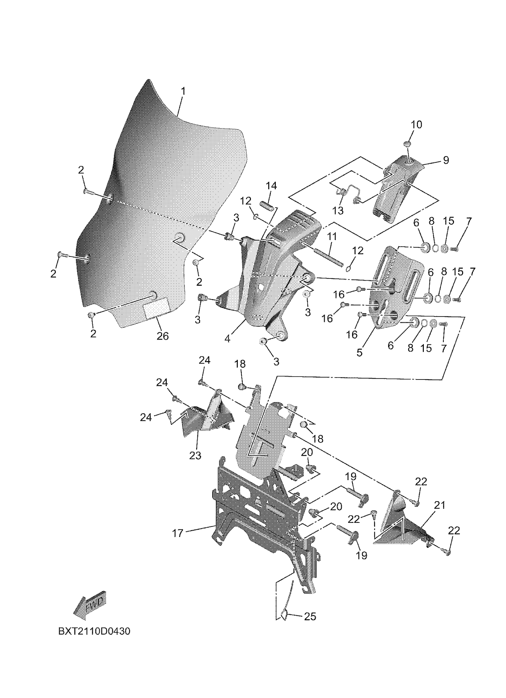Yamaha MTT9SCB (TRACER 9 CA) BRN6 2025 WINDSHIELD Diagram