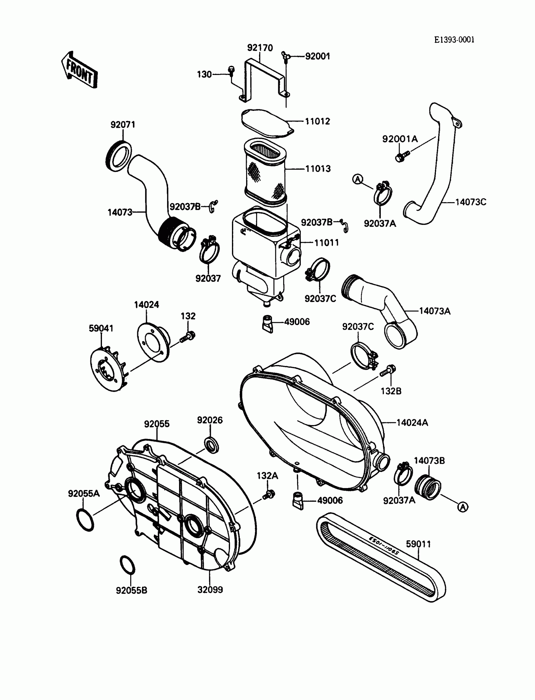 Kawasaki Mule 1000 Converter Cover/Drive Belt Diagram