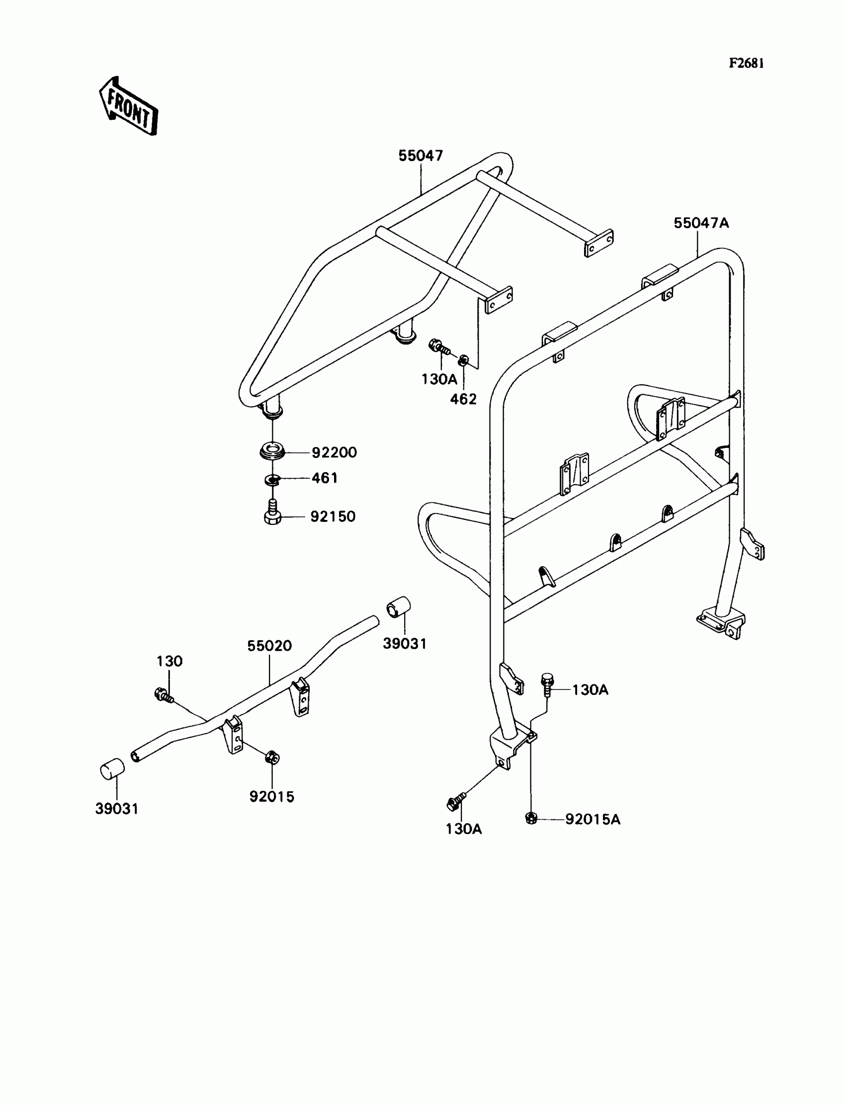 Kawasaki Mule 2010 Guard/Cab Frame Diagram