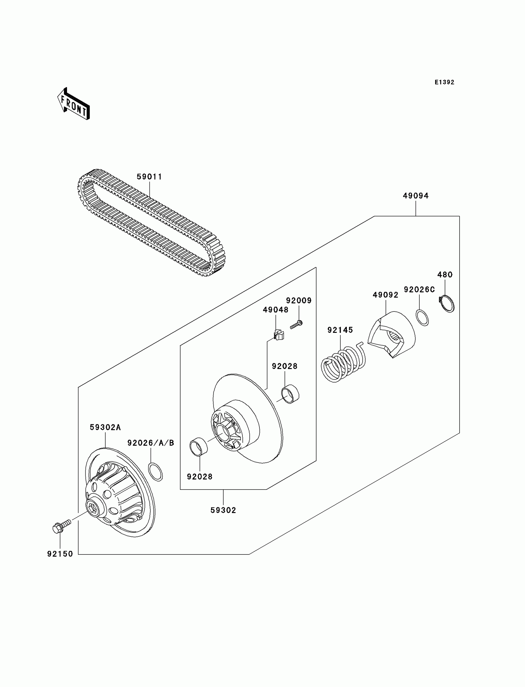 Kawasaki Mule 3010 Trans4x4 Driven Converter/Drive Belt Diagram