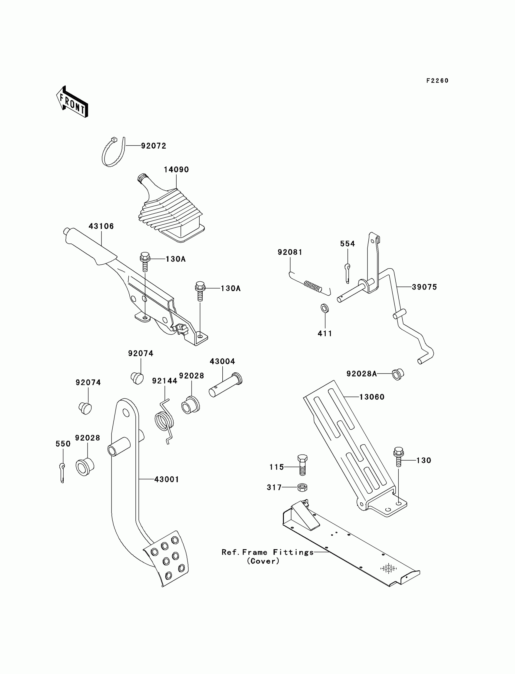 Kawasaki Mule 3020 Turf Brake Pedal/Throttle Lever Diagram