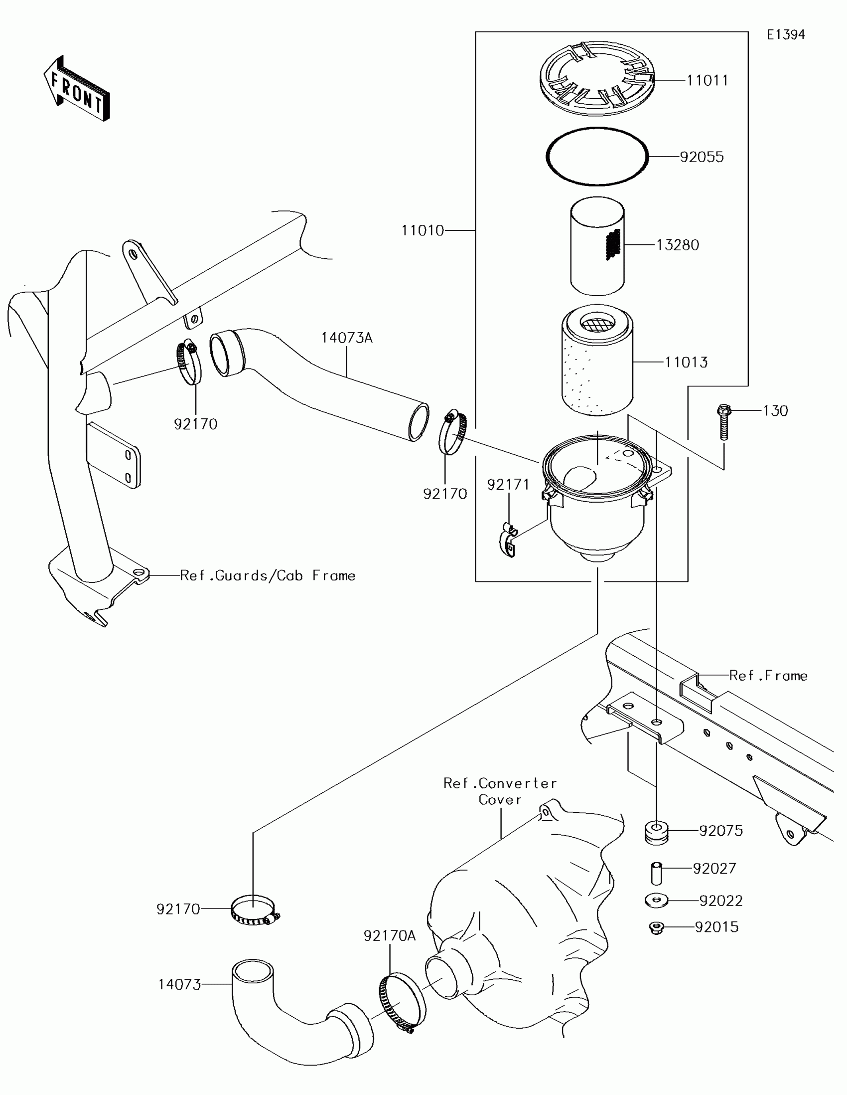 Kawasaki MULE™ 4000 Air Cleaner-Belt Converter Diagram