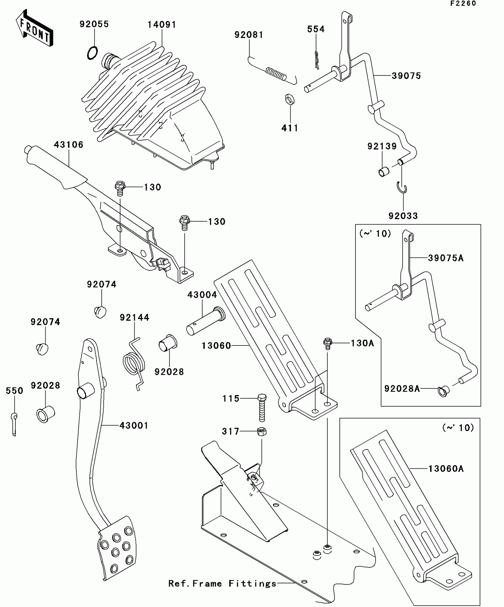 Kawasaki MULE™ 4000 Brake Pedal/Throttle Lever Diagram