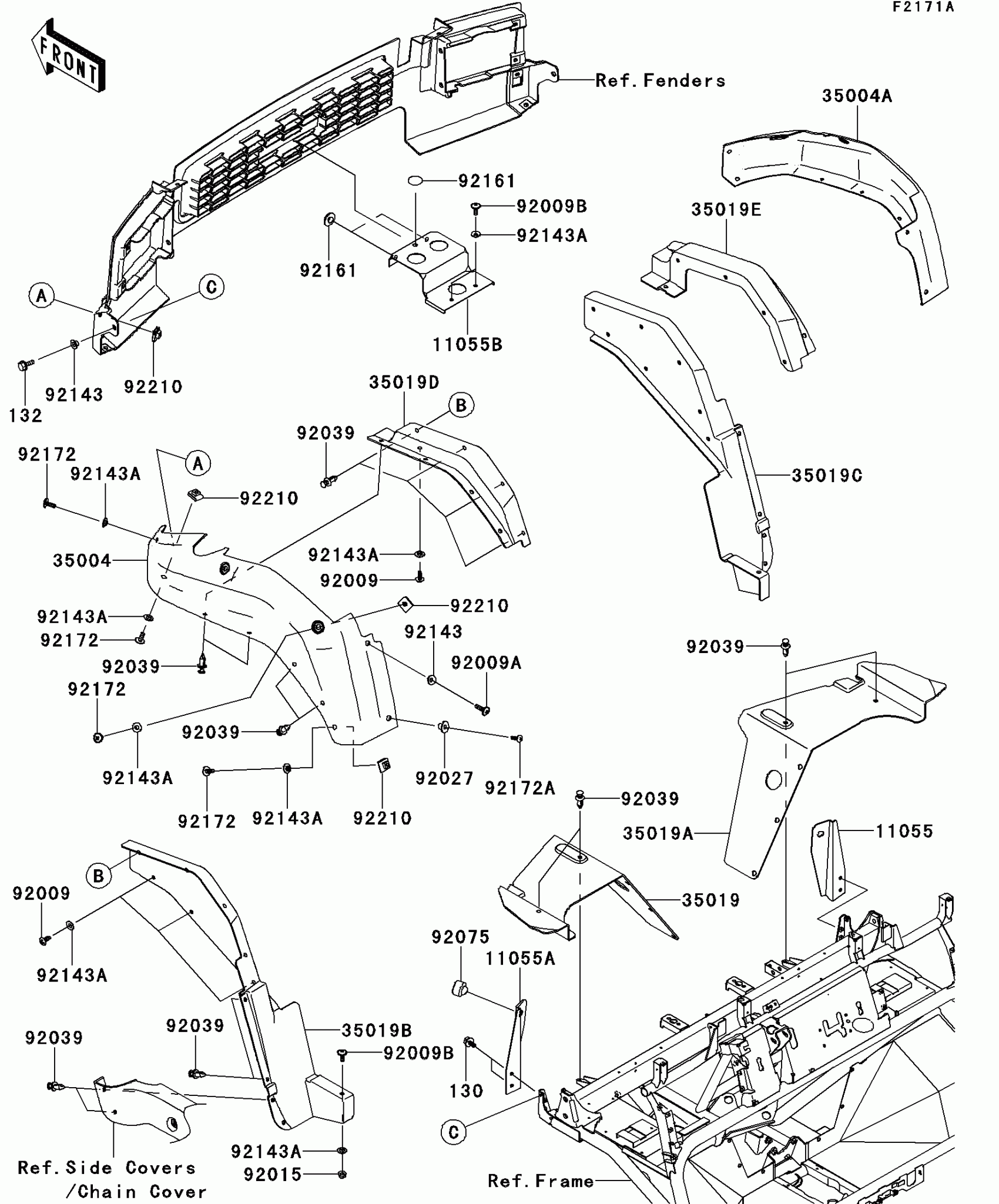 Kawasaki MULE™ 4000 Front Fender(s)(PCF/PDF) Diagram